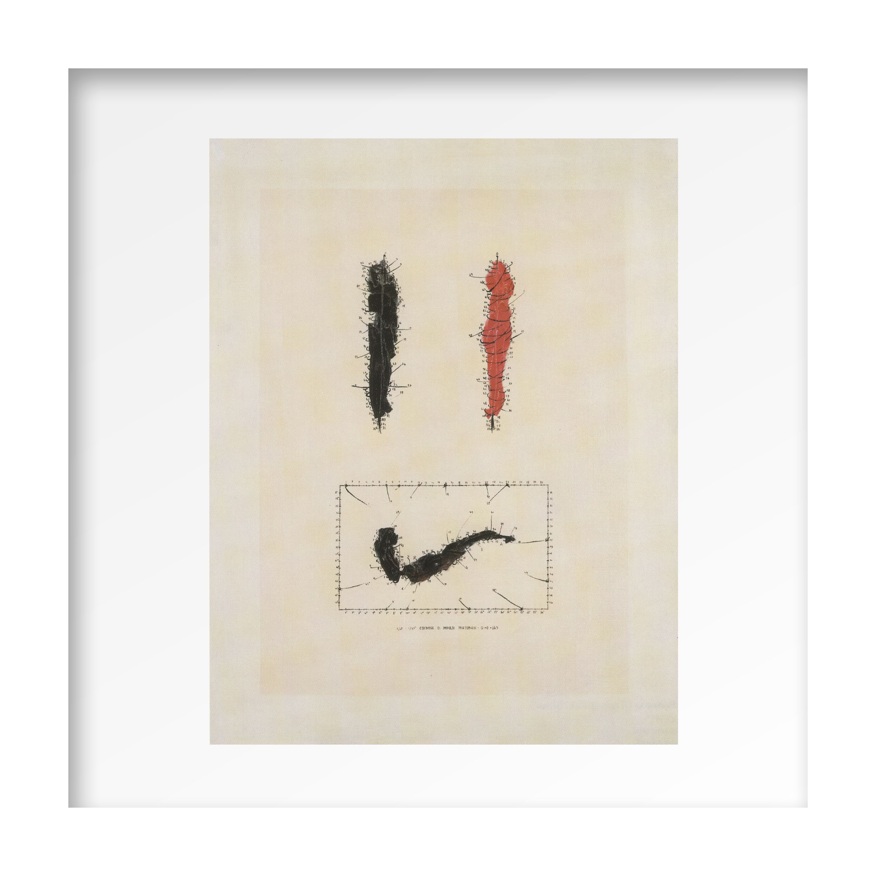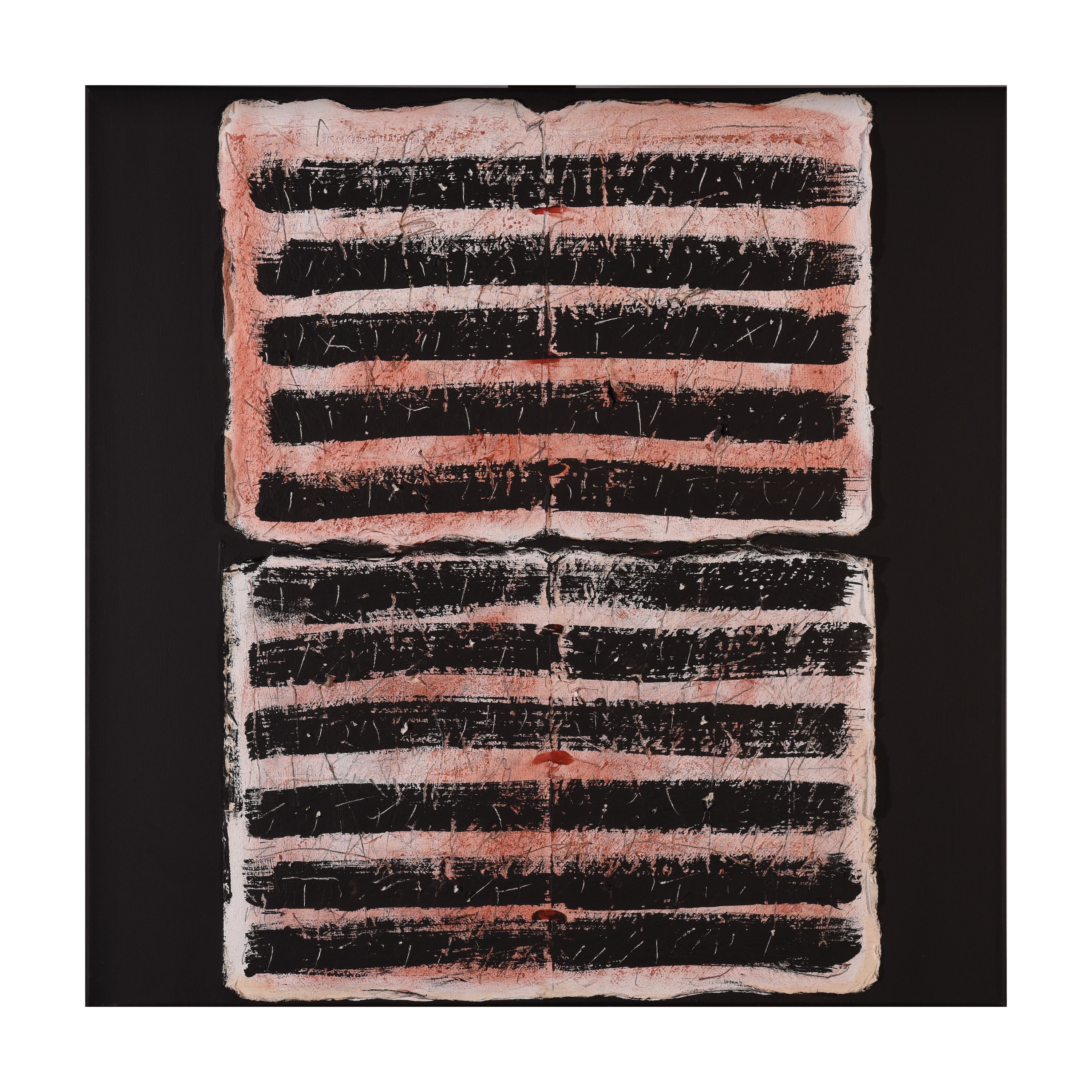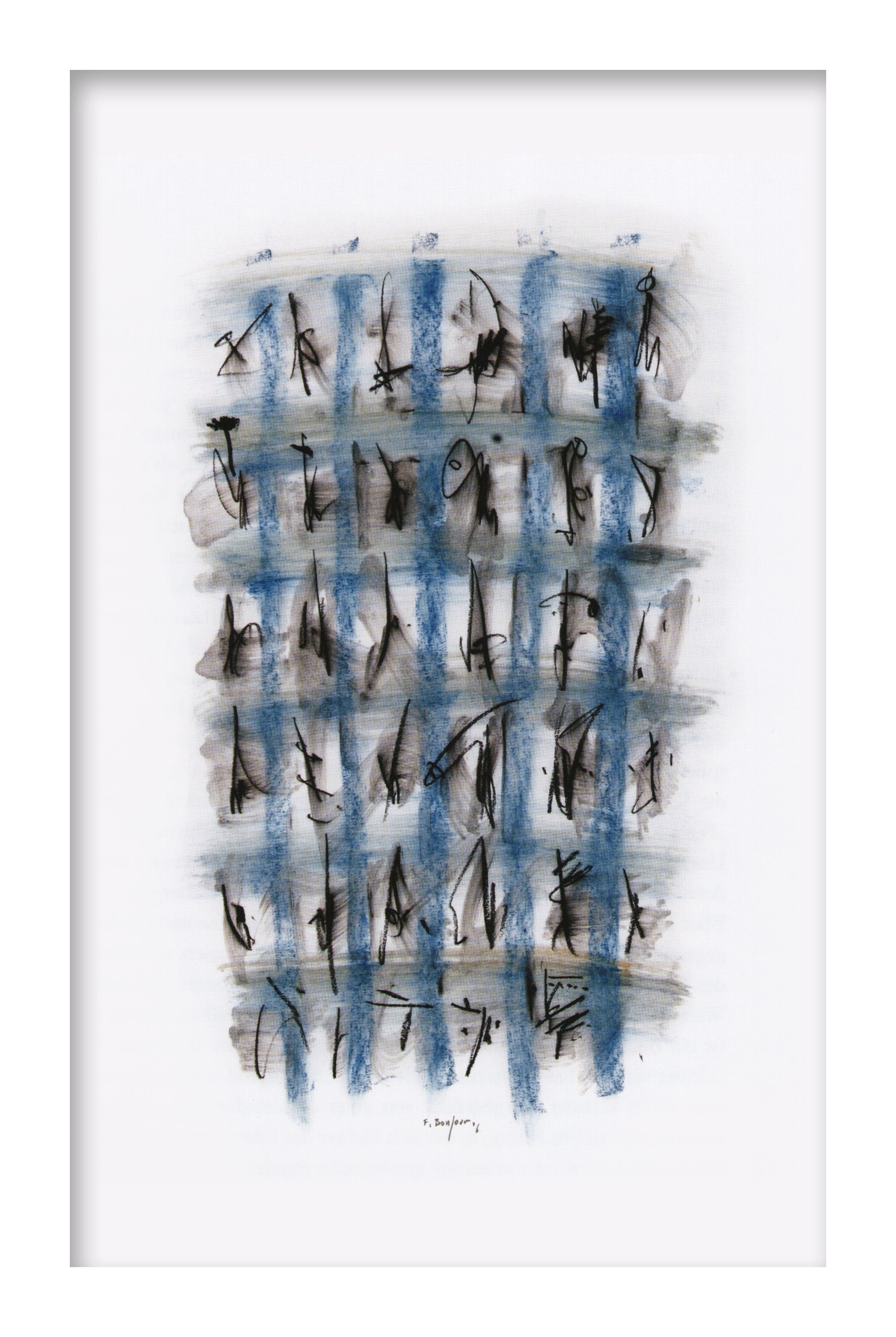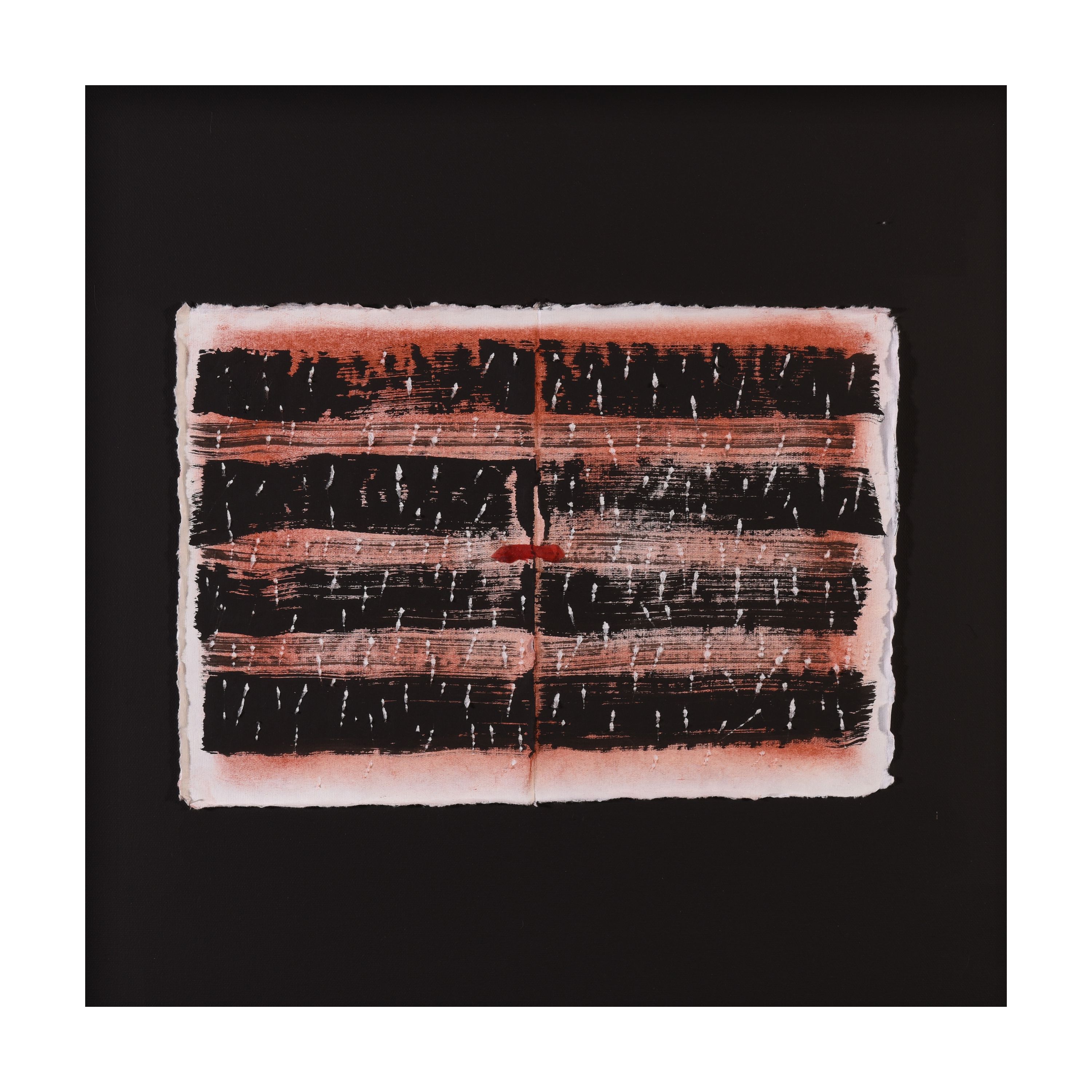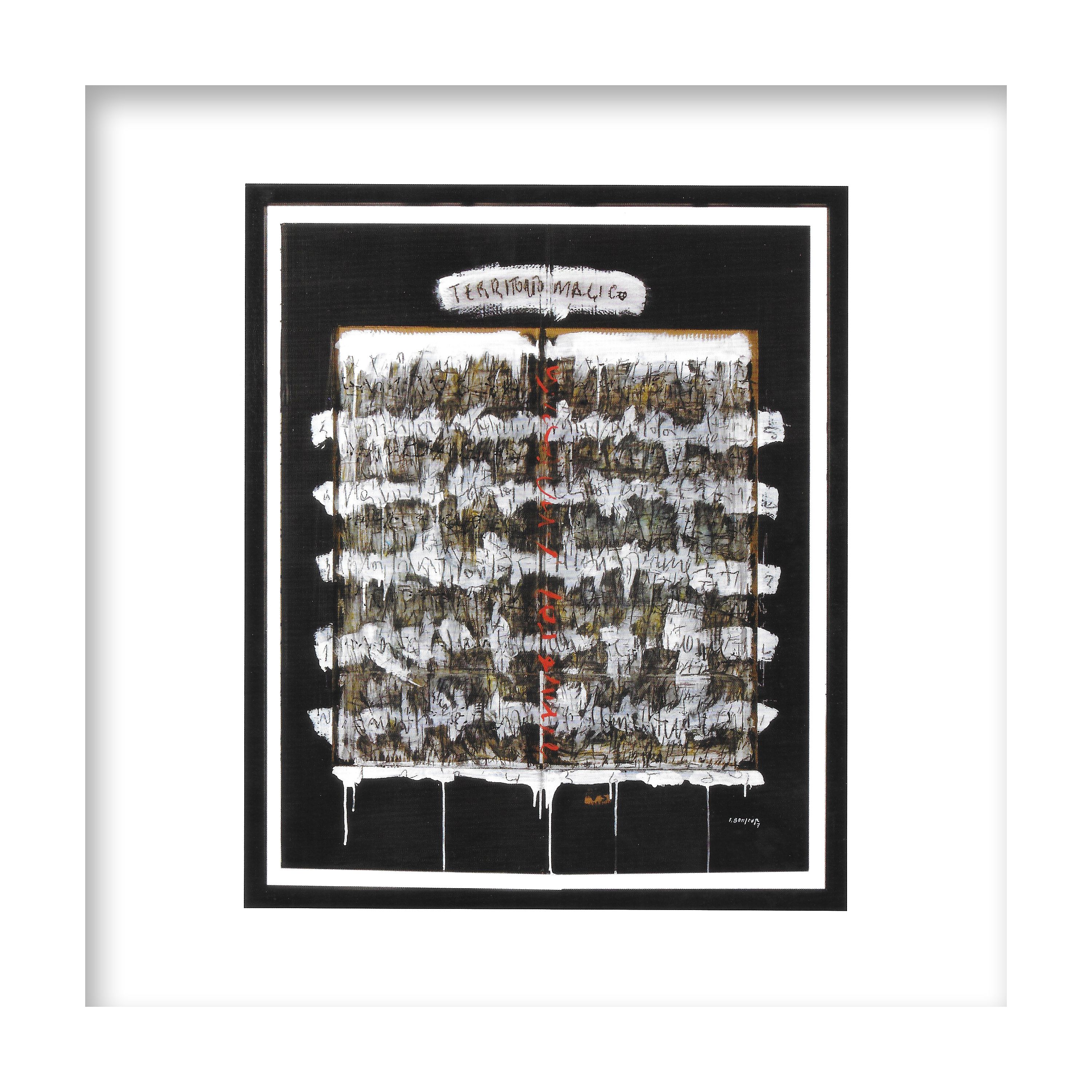 Bonjour adopts an expressive language of great material richness, juxtaposing heterogeneous elements with surprising harmony. His paintings often transcend the boundaries of the canvas, taking on an almost three-dimensional dimension thanks to the inclusion of unconventional objects and materials. On backgrounds prepared with mixed techniques, the artist applies sheets of paper, scraps of fabric, pages of books worn out by time, newspaper clippings, interweaving them with threads of string, ropes, wood fragments, red wax, broken glass and pigments. These poor materials - the 'skin of the city' as he ideally defines it - carry with them the echo of human presences, evoking lives and stories both past and future. Writing plays a central role in his compositions: elegant words and calligraphies appear, sometimes clearly legible, more often reduced to mysterious and indecipherable signs. This fusion of text and image recalls the legacy of Visual Poetry, but Bonjour reworks it in an entirely personal way. The written page is transformed into a visual element: it can be burnt at the edges, torn or covered with invented graphisms, becoming itself a surface to be contemplated. The combination of these verbal and iconic signs builds a dense and meaningful texture. Nothing is left to chance: the artist composes the different fragments with meticulous care, balancing solids and voids, light and dark, rigidity and fluidity. The result is works of refined elegance, in which the layering of materials creates physical and conceptual depth. Every detail - from the small piece of wax to a thin thread running through the paper - contributes to the overall meaning, inviting the observer into a silent conversation with the work. The result is a unique visual language, sober but incisive, capable of speaking on different levels: cultured and at the same time immediate, intimate and universal.