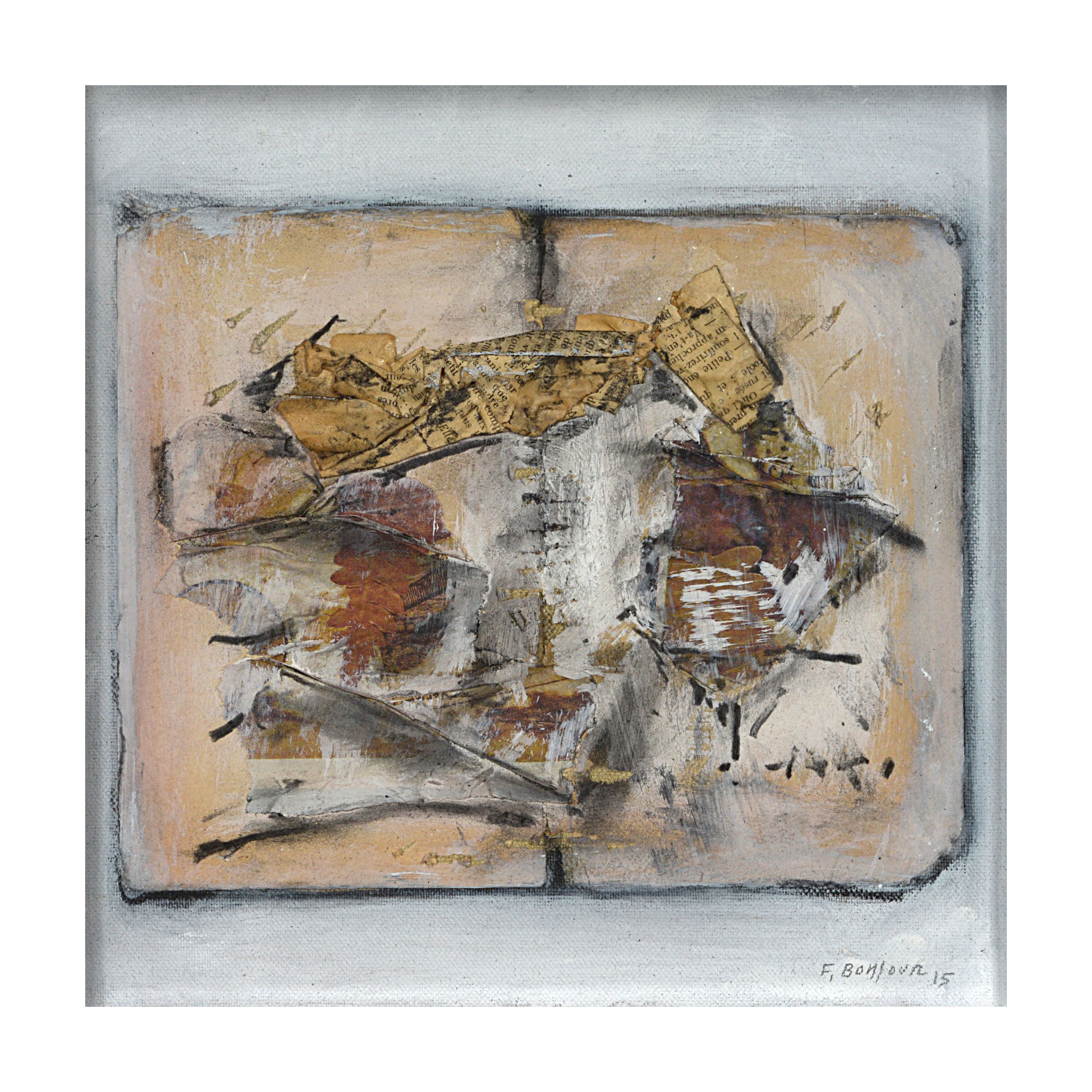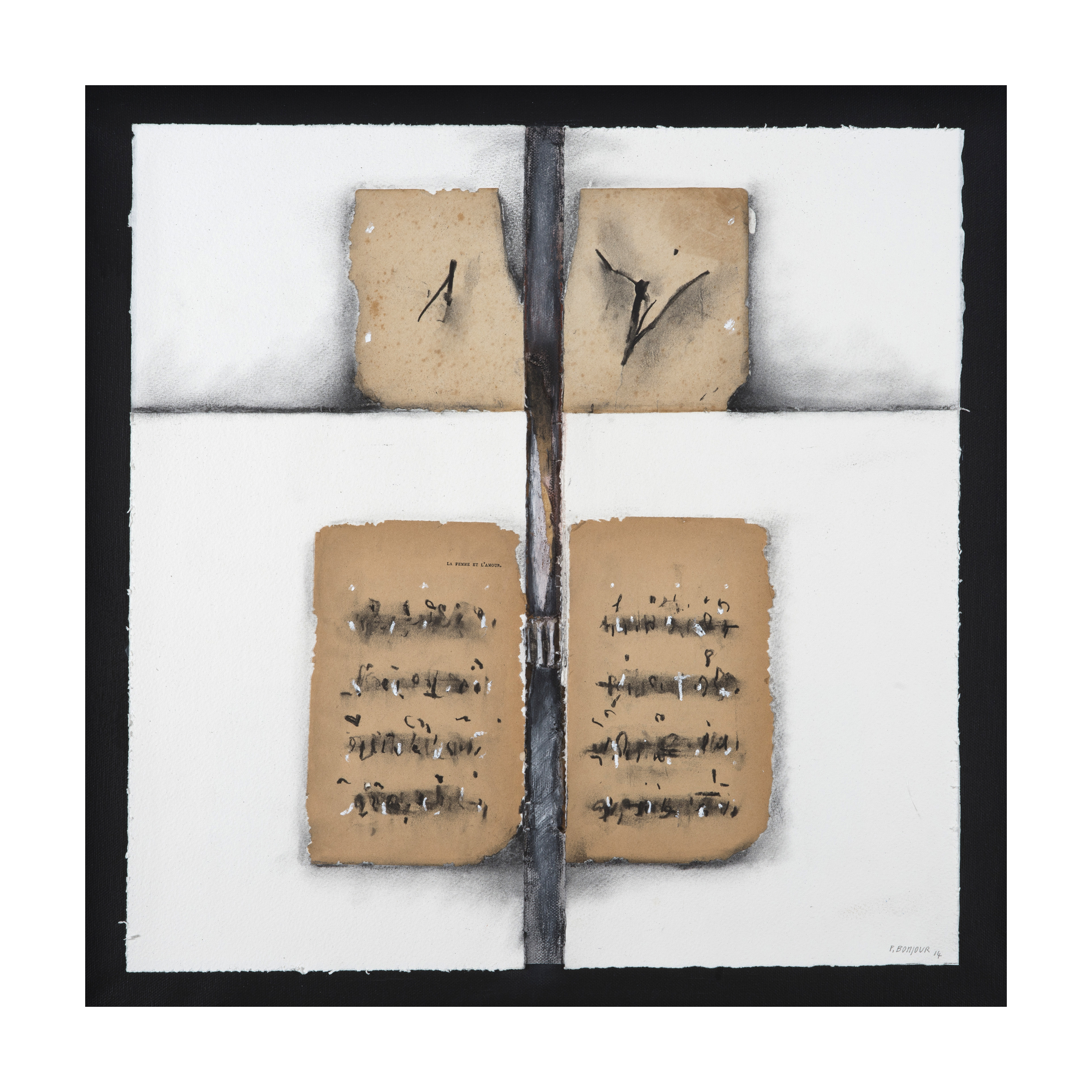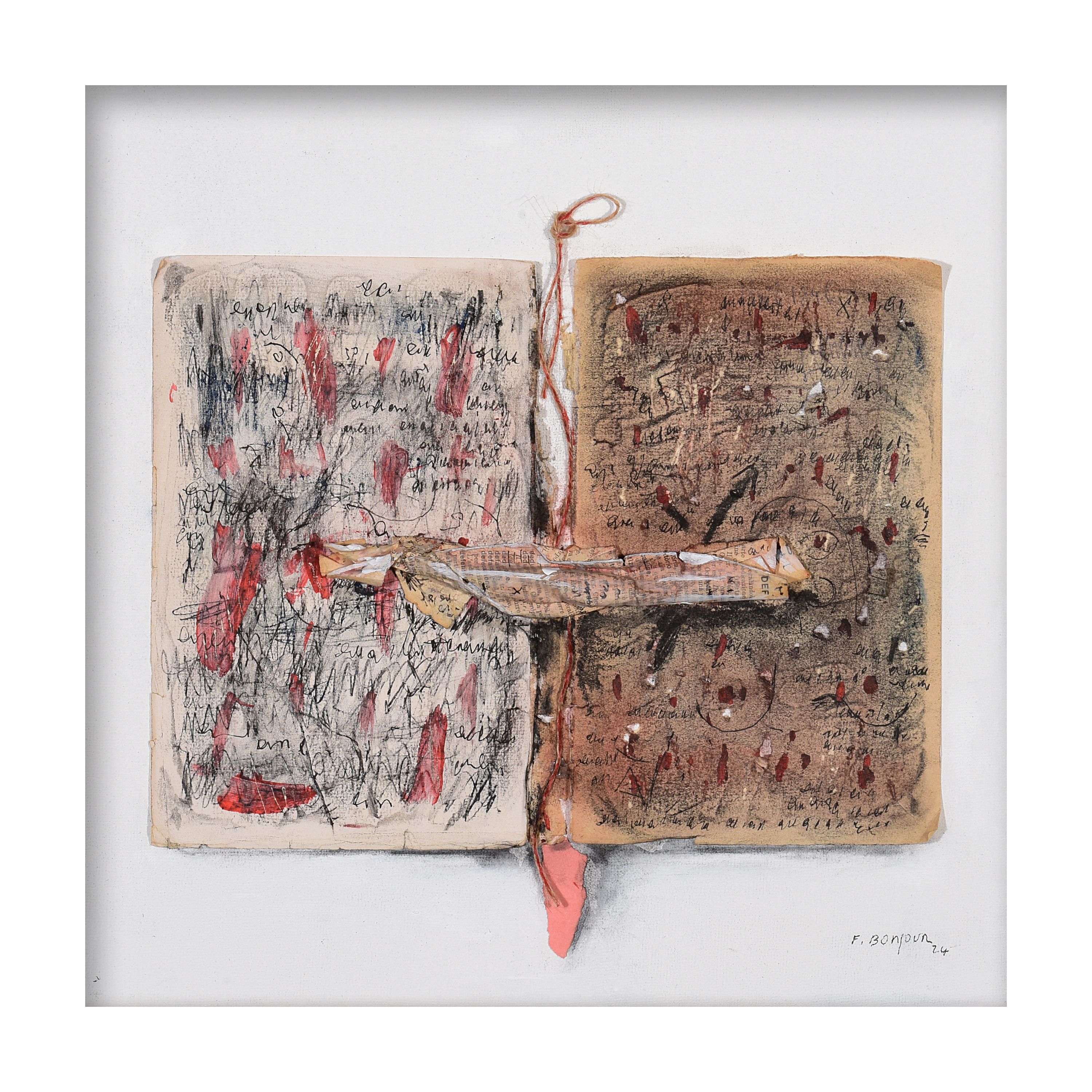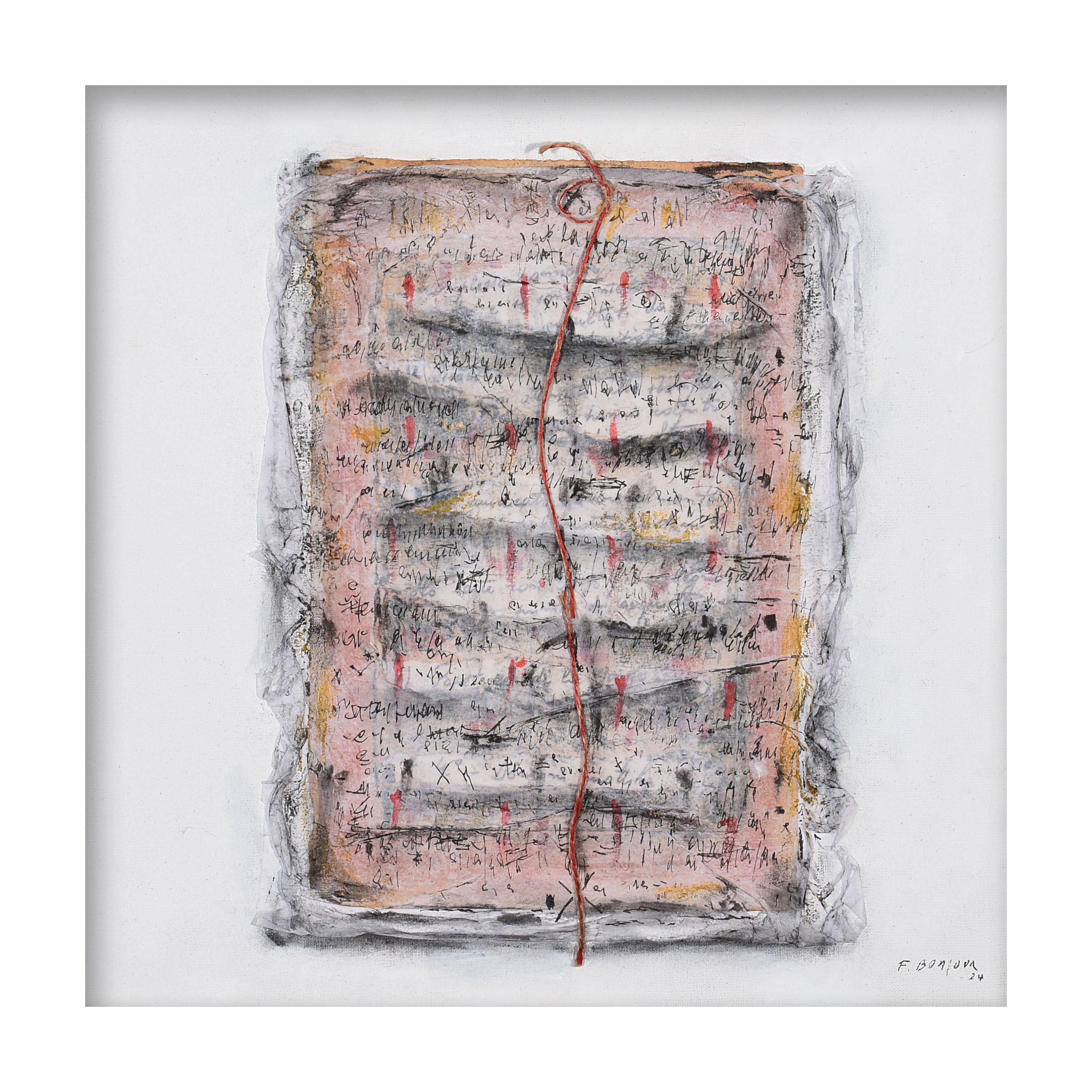 François Bonjour's creations stem from the idea that every fragment of reality can tell a story. His poetics are deeply linked to memory and time: ancient books, yellowed pages, letters and words emerge in his works as traces of past lives, to be saved from oblivion in an era dominated by digital technology. Each painting thus becomes a small story of existence, a “place” suspended between truth and vision where human imprints – the beauties and ruins of the world – take on new meanings. Bonjour draws on the literary universe to transfer its essence into her visual language: the book is seen as an everyday relic, a guardian of wisdom, the written page as a code to be deciphered, the word as an indelible trace of emotions. In her works, these elements are not mere quotations but narrative voices, tools of an intimate story that engages the viewer. The observer is invited to explore the work as a territory of memory, gradually discovering hidden levels of interpretation. This ability to tell stories, to transform materials into stories, has been a constant feature of Bonjour's artistic career since its beginnings in the 1970s. Despite his stylistic evolution, the artist has always remained faithful to his basic idea: to breathe new life into memories and traces of the past, composing them into a present full of poetry.