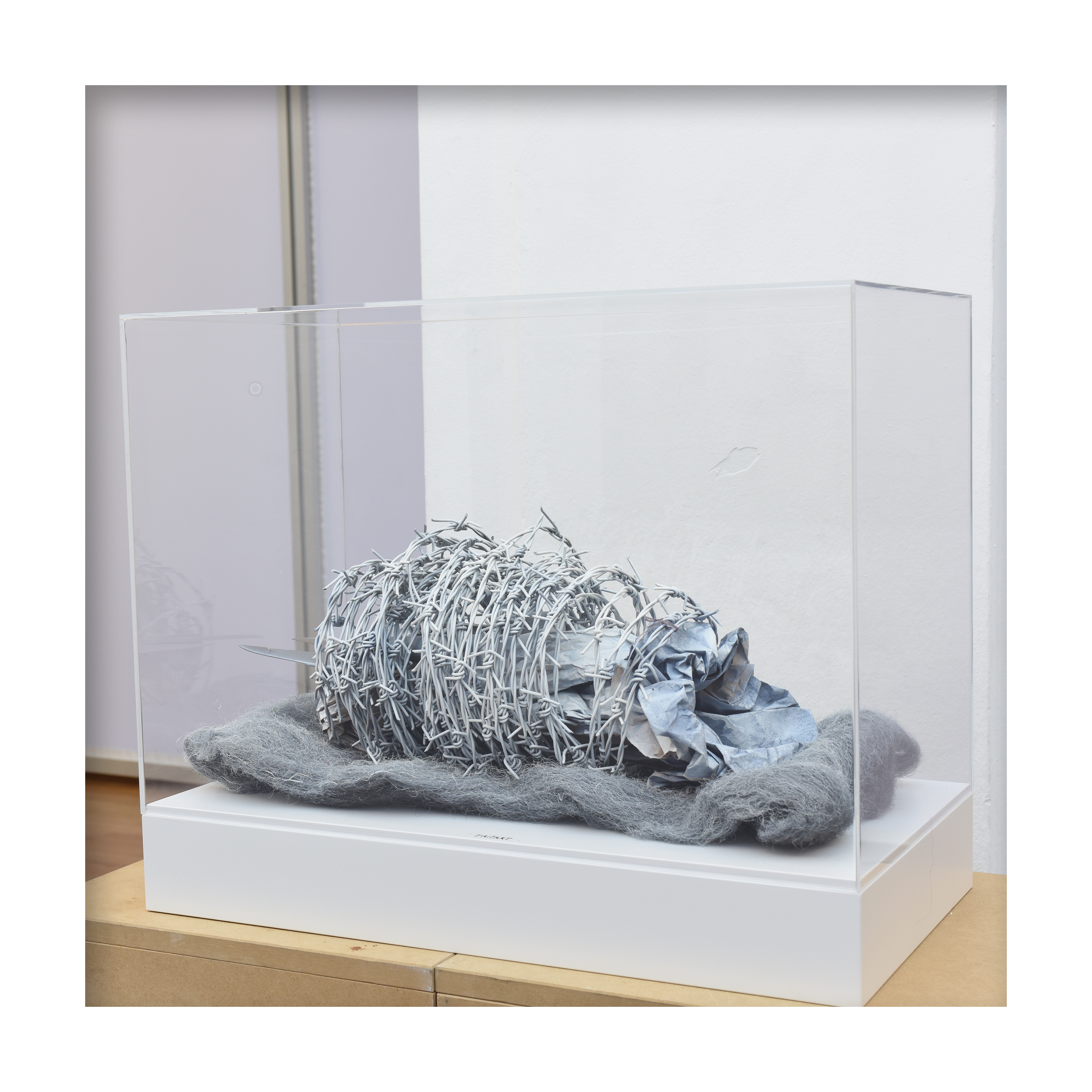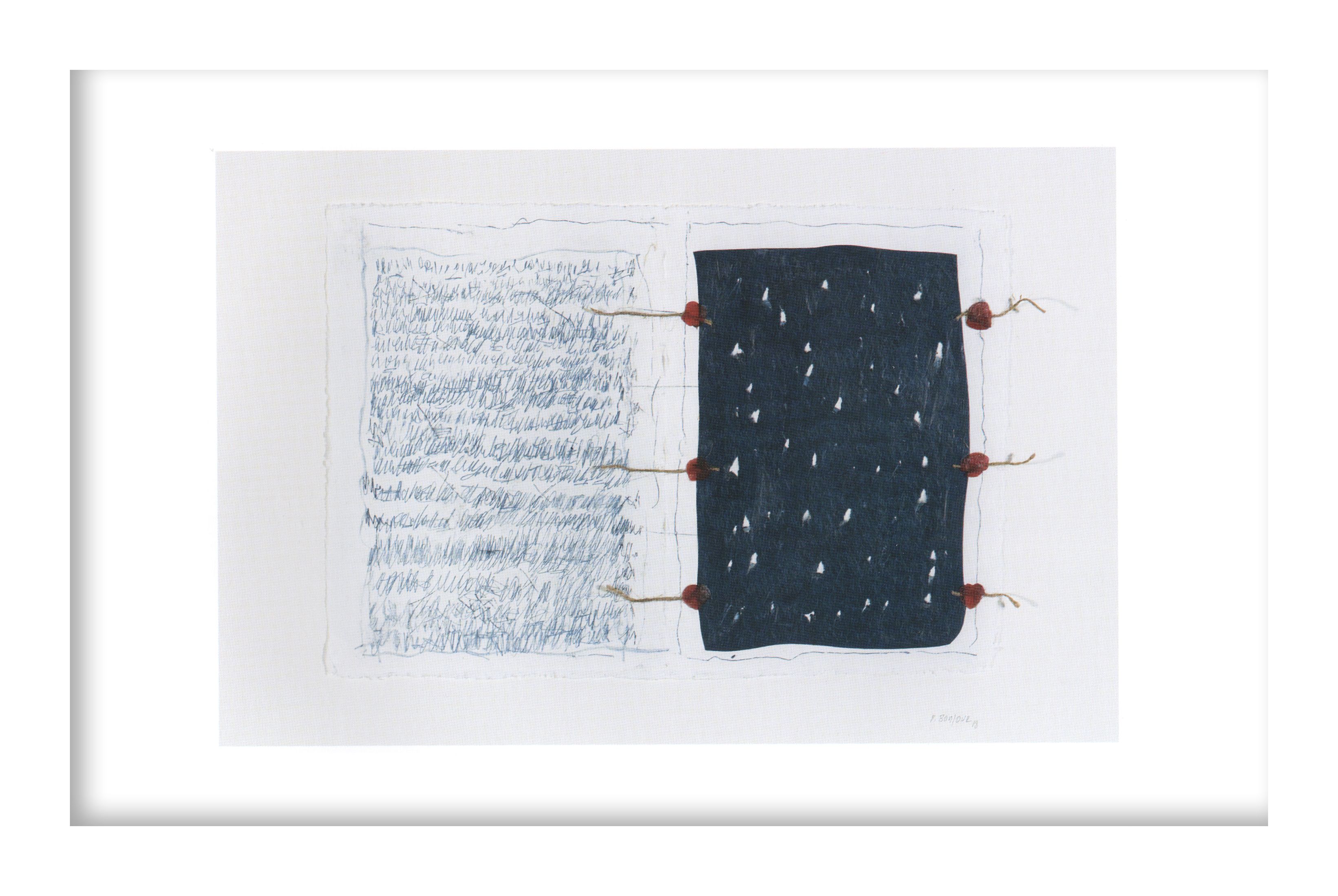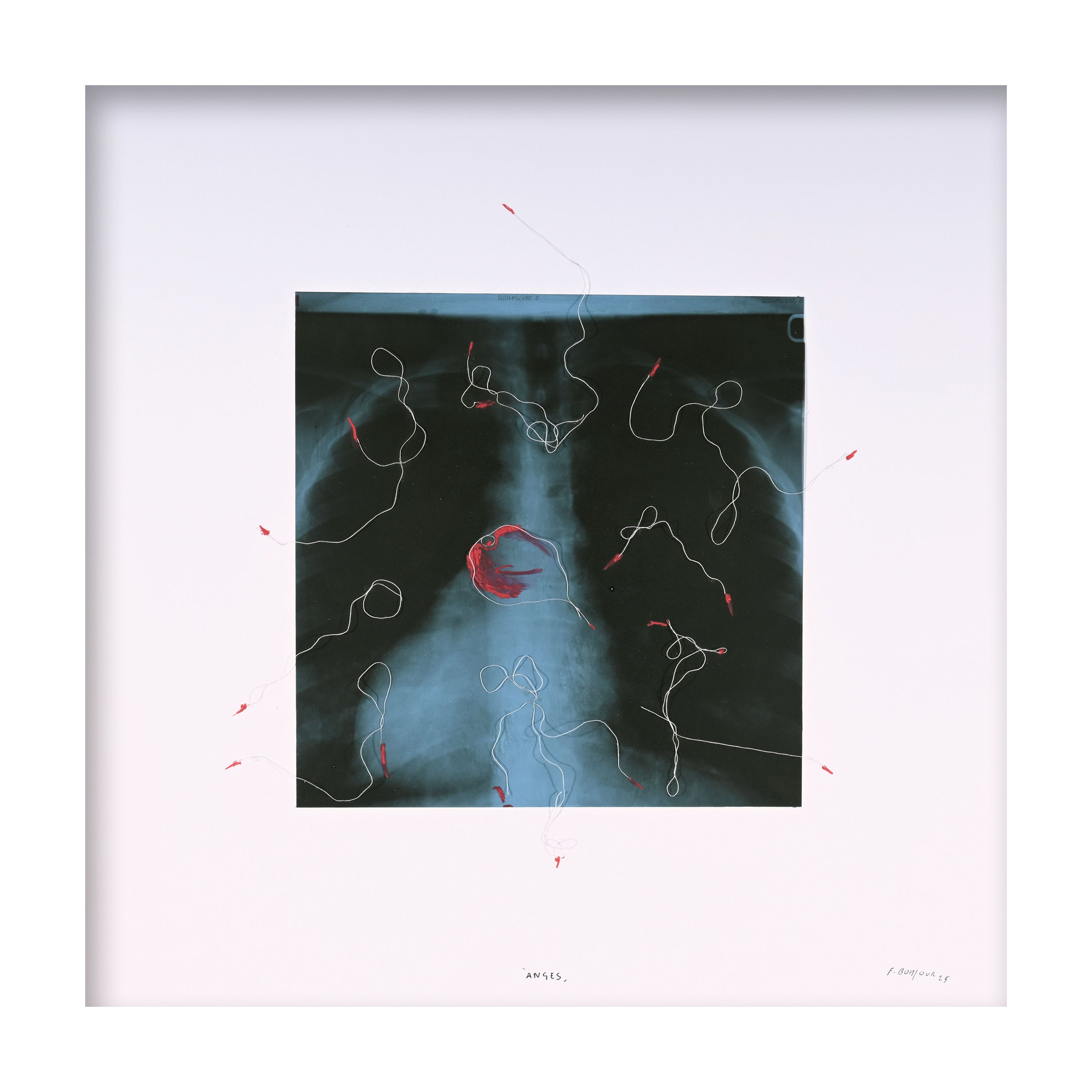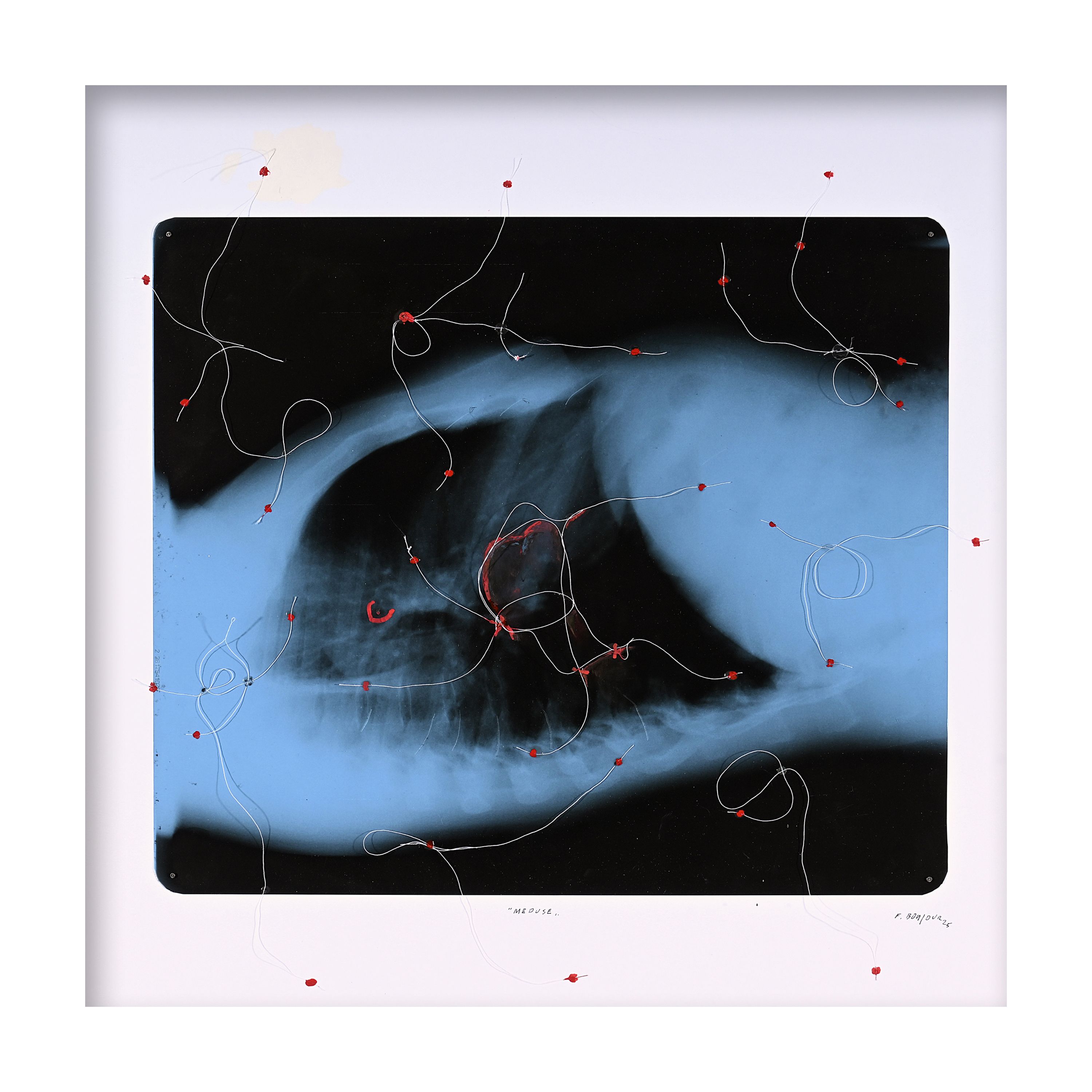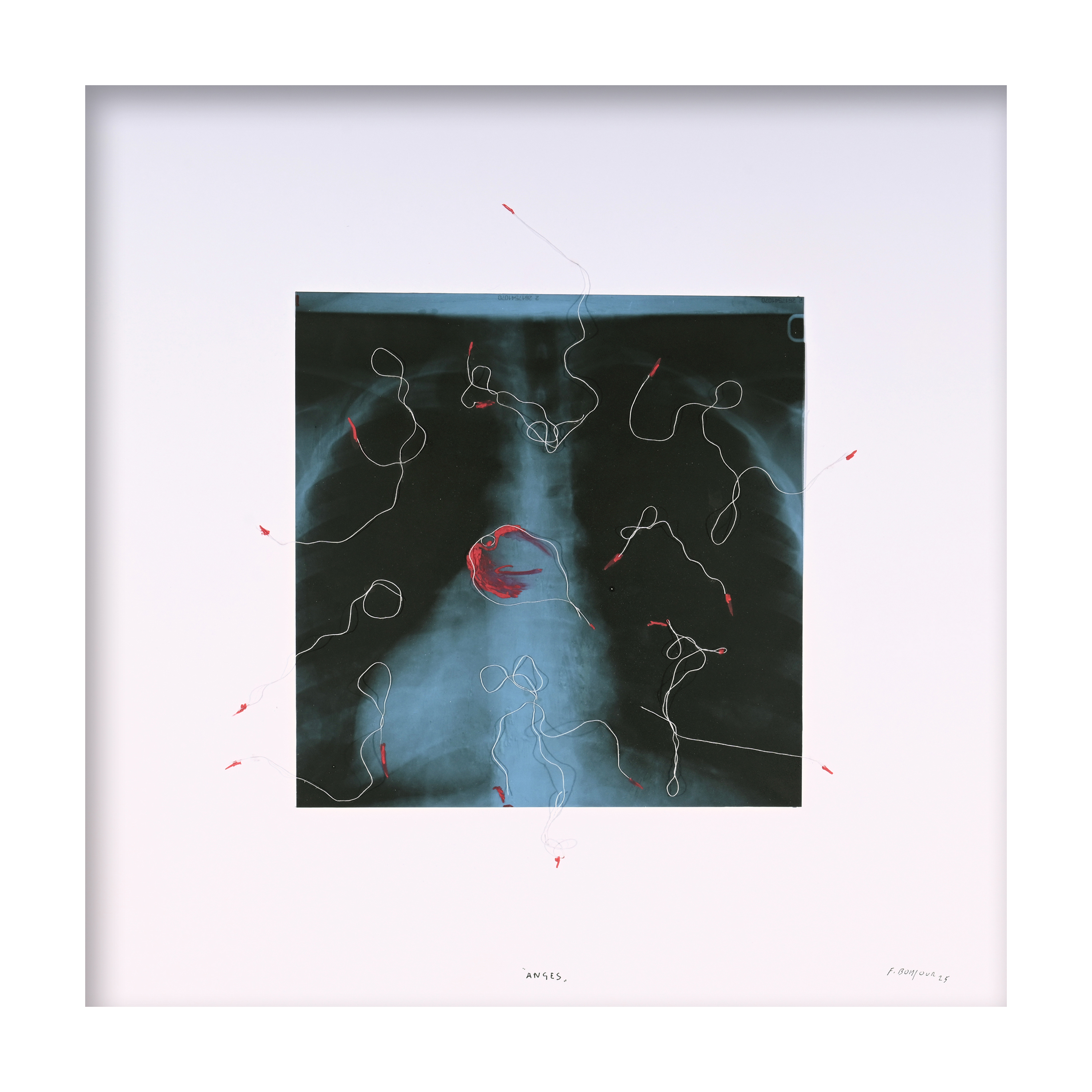 While maintaining an underlying coherence, François Bonjour's art has evolved over the decades through different cycles and experimentation. From his beginnings to the present day, the artist has been able to embrace new stimuli without ever betraying his own poetics. In some past phases, her compositions have presented more lively and pastel tones, with colour combinations almost like material patchwork. There have been periods in which Bonjour has worked on the recycling of books in object form: discarded volumes have been transformed into works of art, with pages stitched together, sealed in wax or filled with personal and enigmatic writing, as if the artist wanted to converse directly with those texts and bring them to new life. Around the end of the 2010s, new symbolic elements emerged in his canvases, such as thin red threads snaking beneath the white surface and surfacing here and there like sprouts of untold stories. At the same time, Bonjour has deepened his use of specific materials in cycles of serial works: a few years ago he explored carbon paper to obtain deep black fields scratched with light, while more recently he has turned his attention to a material as technological and at the same time intimate as X-ray film. Over the past two years, the artist has in fact often incorporated X-rays into his compositions, fascinated by the dual nature of these images: scientific tracings of the human body, but also subtle symbologies of what lies "beneath the surface" of things. This new experimentation with X-rays further enriches Bonjour's visual lexicon, adding transparencies and bluish tones to his usual earthy and neutral tones, and creating an evocative contrast between past and present, organic and technological. Even beyond easel painting, the artist tries his hand at installations and sculptures, keeping his themes intact: books imprisoned in metal cages, boards that become reliquary shrines of memories, or large-scale compositions that transform the exhibition space into a labyrinth of signs and objects. In each new creative phase, François Bonjour demonstrates a dynamic fidelity: he changes media, experiments with different formal solutions, but remains faithful to his vision. The common thread - the idea that art can unveil the essence hidden in humble, everyday things - unites all his works, making his path recognisable and at the same time always alive and surprising.