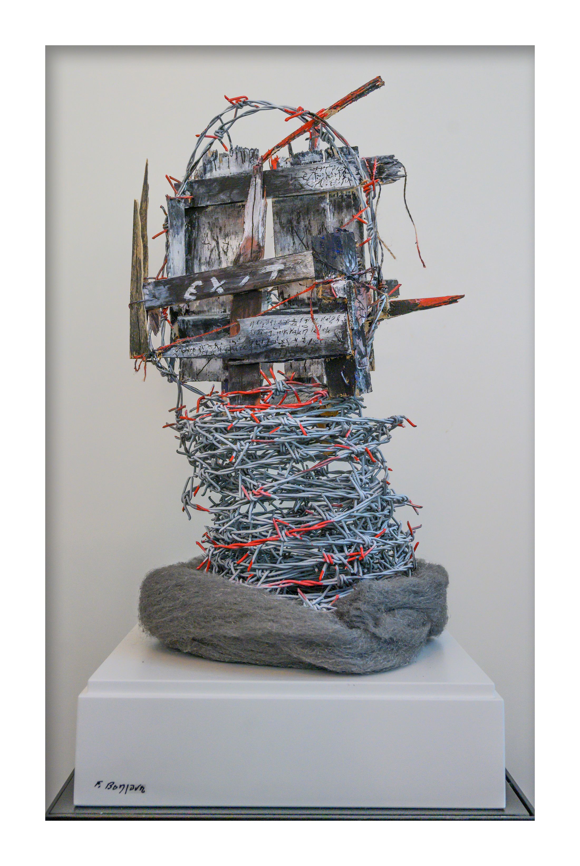 Bonjour's view of the world is imbued with a sensitivity that seeks the essential in things. His artistic research can be read as a patient journey towards simplification and expressive authenticity. Year after year, the artist has eliminated superfluous ornamentation, leading his works to a form of visual purging: few forms, few colours, but increasingly clearer meanings. This tension towards the essence translates the desire to give a poetic order to the chaos of matter. In fact, Bonjour collects the dispersed fragments of reality - forgotten objects, waste, memories - and recomposes them in a rigorous equilibrium, almost as if he wanted to discipline the disorder of the world. His works are therefore suspended in the balance between reality and imagination: they are 'reverberations' of the real world, filtered however through a gaze that purifies them of the dross of everyday life. There is no illusionistic or decorative intent, but rather a desire to ennoble ordinary existence, to extract its deep meaning. The overall tone of his compositions is measured and almost whispered: a visual lightness that in no way detracts from the strength of the message, on the contrary, it makes it more penetrating. Bonjour manages to combine lyricism and rigour: play and rule, spontaneity and reason coexist in his compositional choices. This generates an internal rhythm within the work - a breath, an underground pulsation - that holds the heterogeneous parts together and animates them with a life of its own. In this sense, each of Bonjour's creations becomes an ordered microcosm, a pulsating place of secret connections and controlled contrasts. The observer, in front of these works, is called to an almost meditative experience: he must get closer, linger over the details, let himself be guided by the paths traced by the artist to grasp the 'secret intelligence' of things.