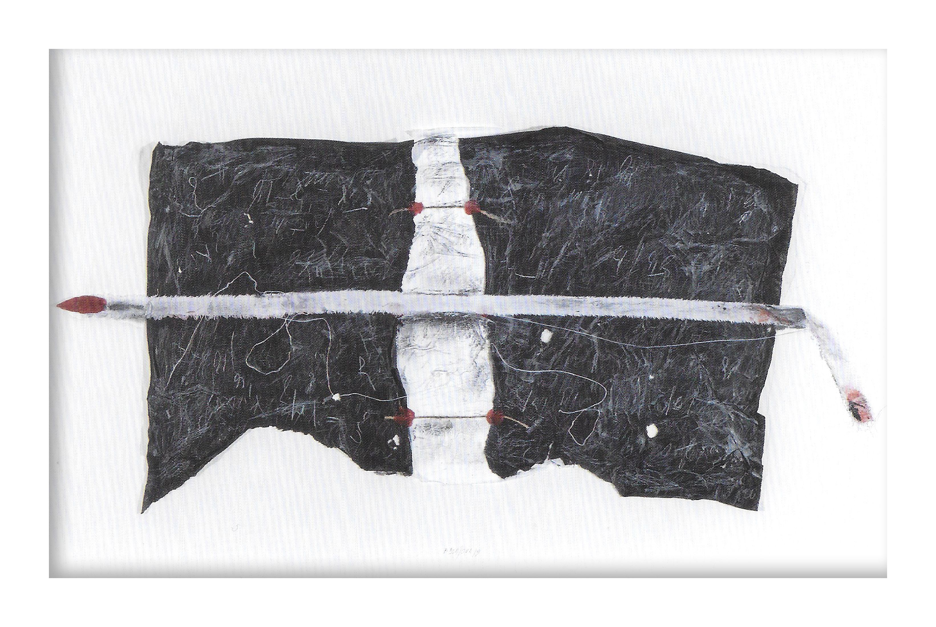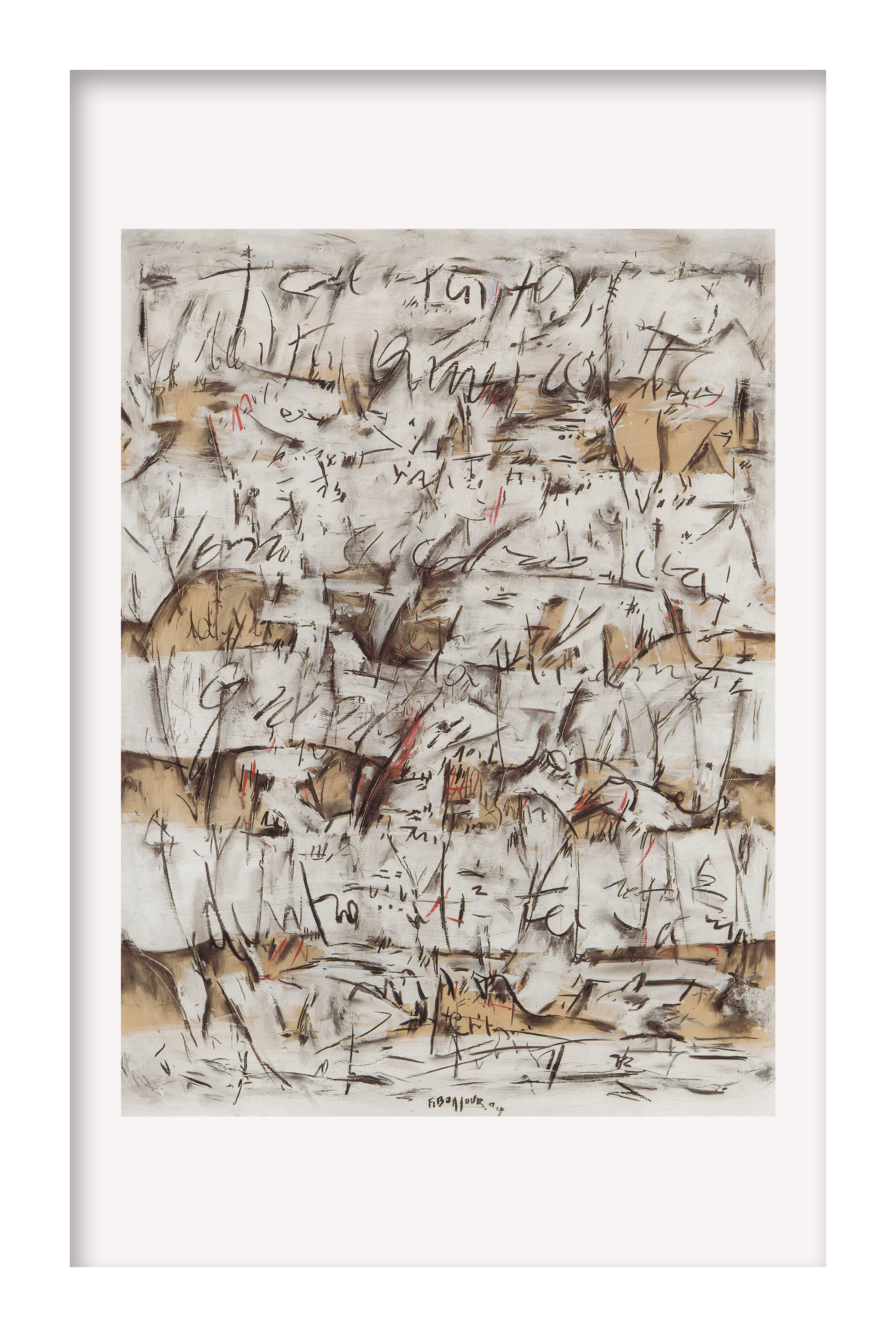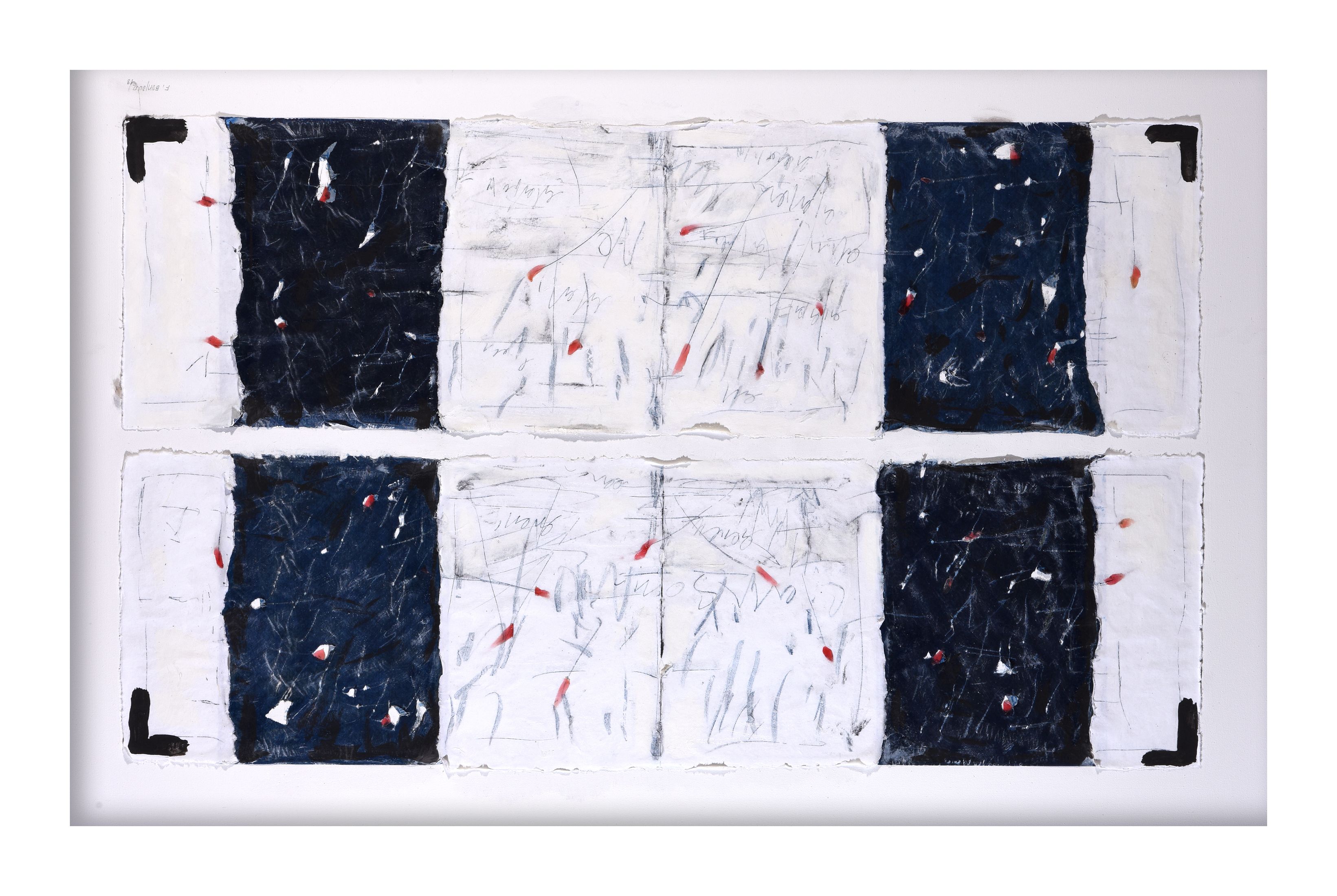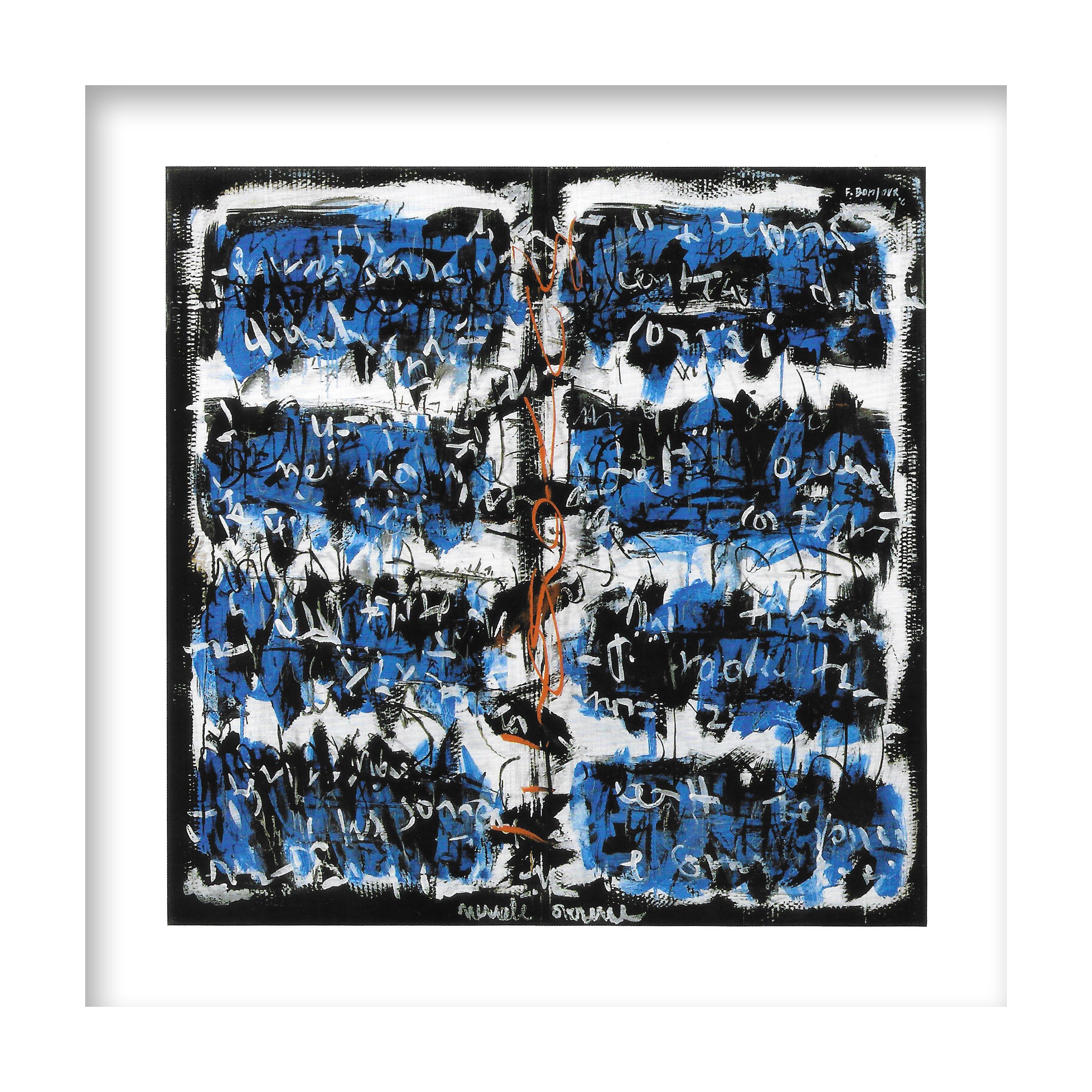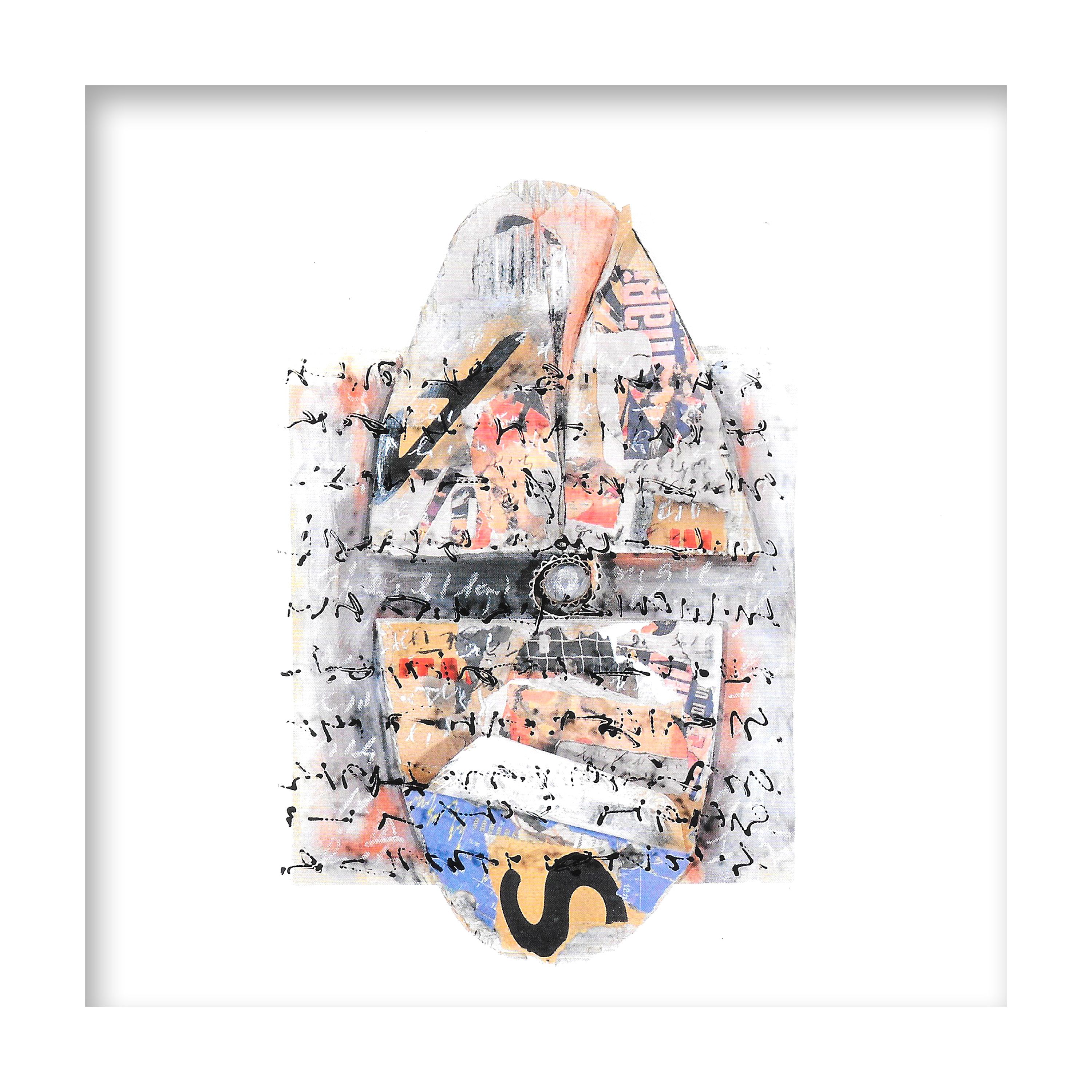 Bonjour adopts an expressive language of great material richness, juxtaposing heterogeneous elements with surprising harmony. His paintings often transcend the boundaries of the canvas, taking on an almost three-dimensional dimension thanks to the inclusion of unconventional objects and materials. On backgrounds prepared with mixed techniques, the artist applies sheets of paper, scraps of fabric, pages of books worn out by time, newspaper clippings, interweaving them with threads of string, ropes, wood fragments, red wax, broken glass and pigments. These poor materials - the 'skin of the city' as he ideally defines it - carry with them the echo of human presences, evoking lives and stories both past and future. Writing plays a central role in his compositions: elegant words and calligraphies appear, sometimes clearly legible, more often reduced to mysterious and indecipherable signs. This fusion of text and image recalls the legacy of Visual Poetry, but Bonjour reworks it in an entirely personal way. The written page is transformed into a visual element: it can be burnt at the edges, torn or covered with invented graphisms, becoming itself a surface to be contemplated. The combination of these verbal and iconic signs builds a dense and meaningful texture. Nothing is left to chance: the artist composes the different fragments with meticulous care, balancing solids and voids, light and dark, rigidity and fluidity. The result is works of refined elegance, in which the layering of materials creates physical and conceptual depth. Every detail - from the small piece of wax to a thin thread running through the paper - contributes to the overall meaning, inviting the observer into a silent conversation with the work. The result is a unique visual language, sober but incisive, capable of speaking on different levels: cultured and at the same time immediate, intimate and universal.
