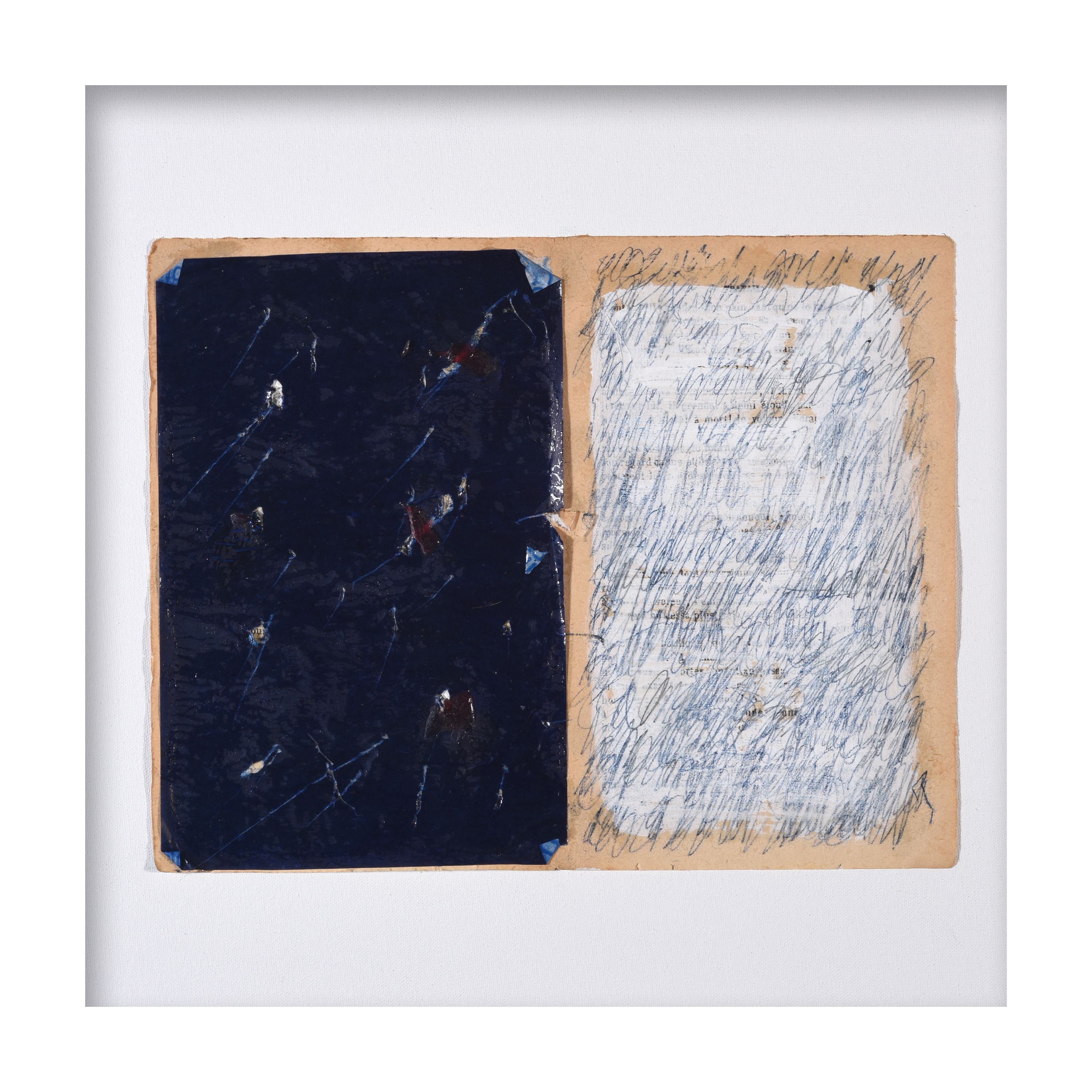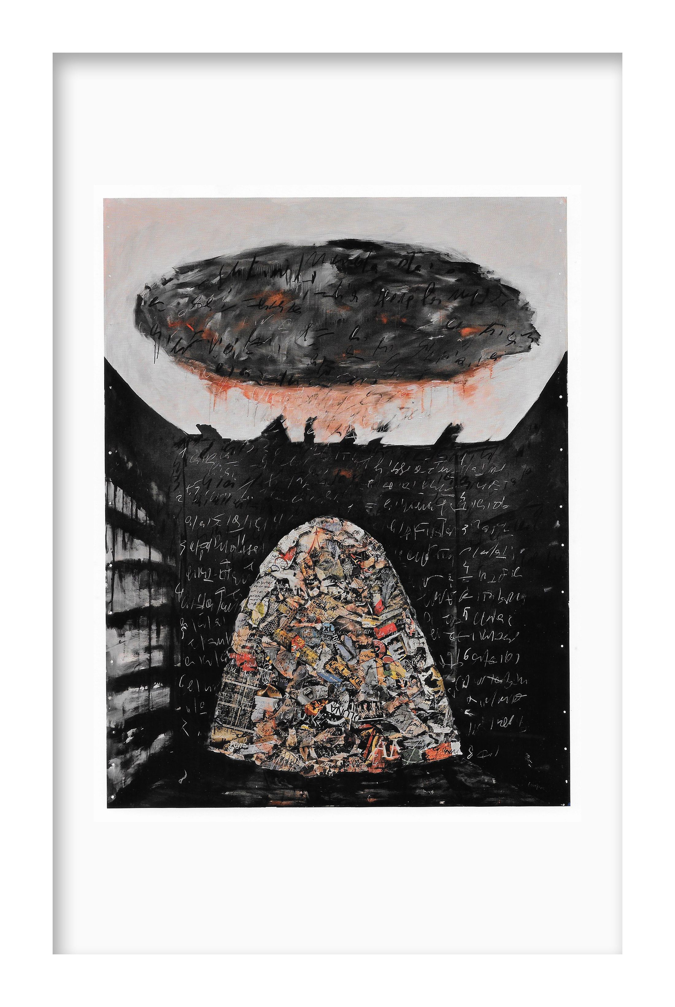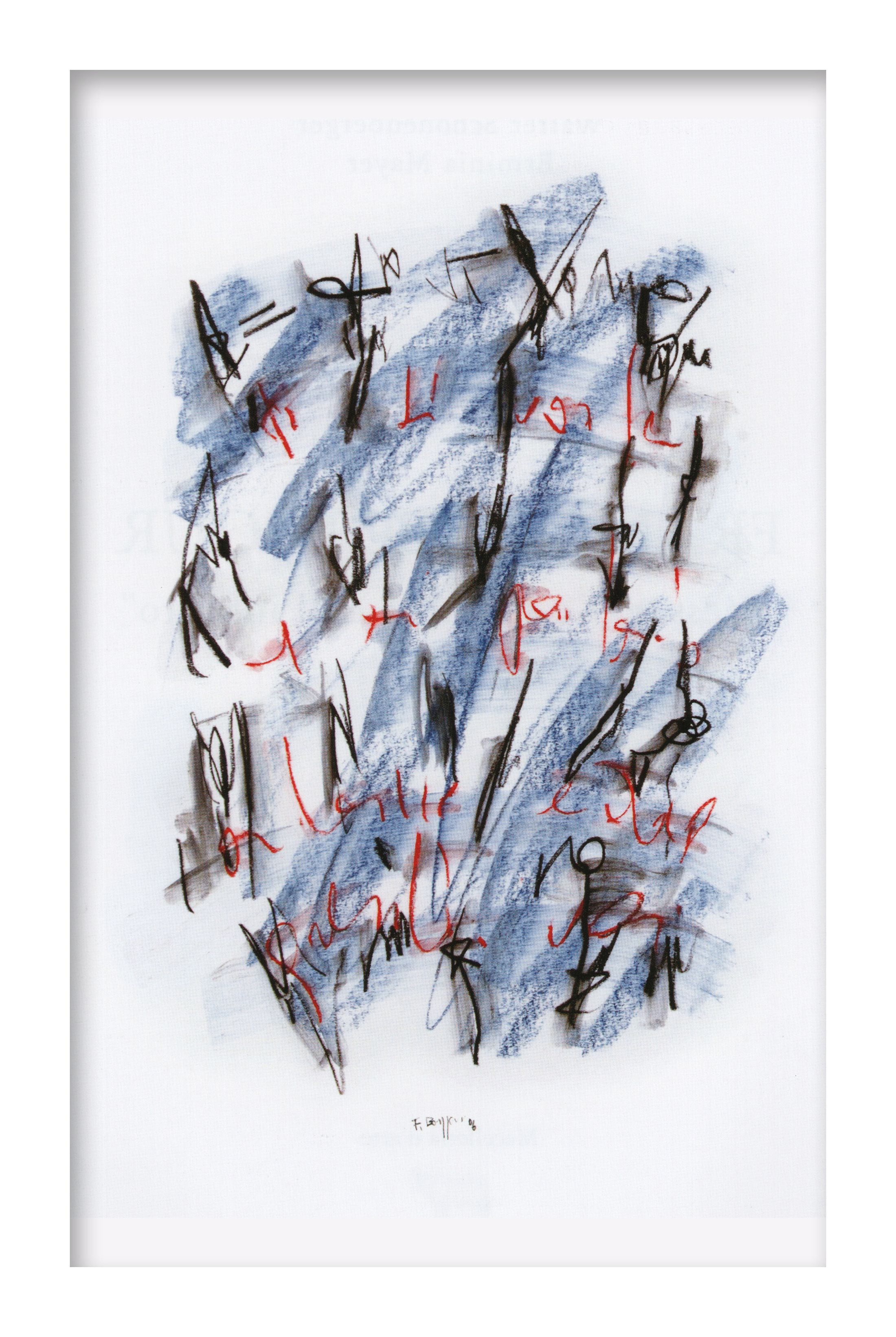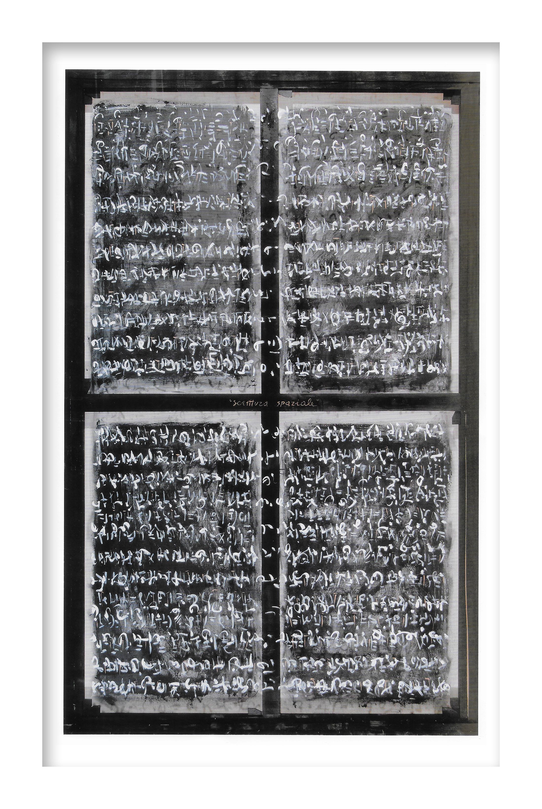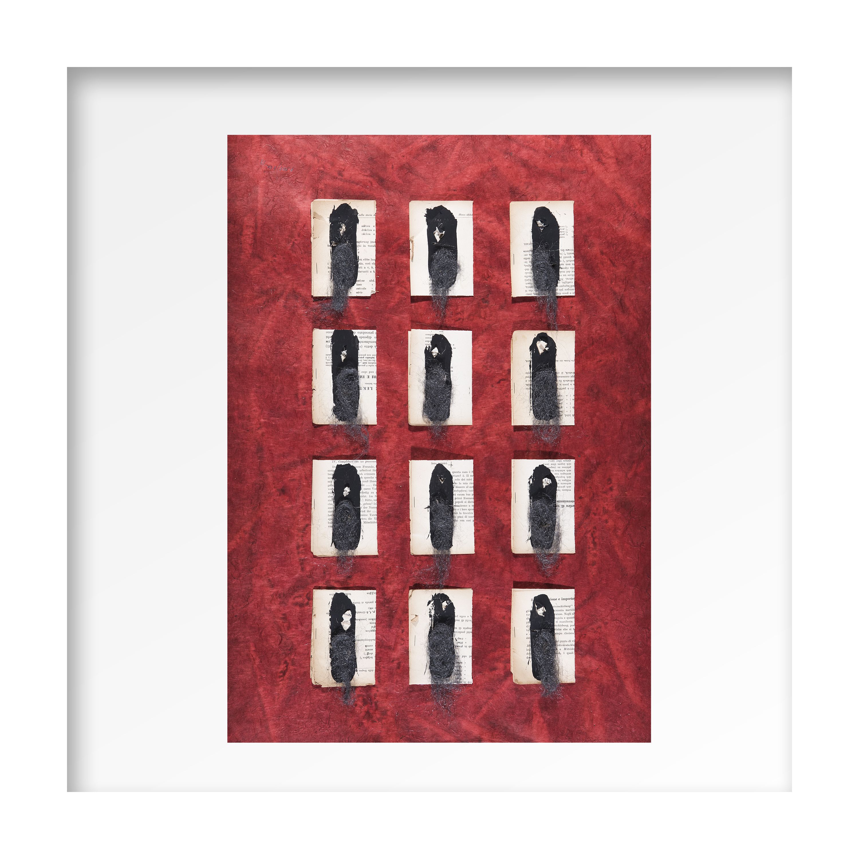 Bonjour adopts an expressive language of great material richness, juxtaposing heterogeneous elements with surprising harmony. His paintings often transcend the boundaries of the canvas, taking on an almost three-dimensional dimension thanks to the inclusion of unconventional objects and materials. On backgrounds prepared with mixed techniques, the artist applies sheets of paper, scraps of fabric, pages of books worn out by time, newspaper clippings, interweaving them with threads of string, ropes, wood fragments, red wax, broken glass and pigments. These poor materials - the 'skin of the city' as he ideally defines it - carry with them the echo of human presences, evoking lives and stories both past and future. Writing plays a central role in his compositions: elegant words and calligraphies appear, sometimes clearly legible, more often reduced to mysterious and indecipherable signs. This fusion of text and image recalls the legacy of Visual Poetry, but Bonjour reworks it in an entirely personal way. The written page is transformed into a visual element: it can be burnt at the edges, torn or covered with invented graphisms, becoming itself a surface to be contemplated. The combination of these verbal and iconic signs builds a dense and meaningful texture. Nothing is left to chance: the artist composes the different fragments with meticulous care, balancing solids and voids, light and dark, rigidity and fluidity. The result is works of refined elegance, in which the layering of materials creates physical and conceptual depth. Every detail - from the small piece of wax to a thin thread running through the paper - contributes to the overall meaning, inviting the observer into a silent conversation with the work. The result is a unique visual language, sober but incisive, capable of speaking on different levels: cultured and at the same time immediate, intimate and universal.
