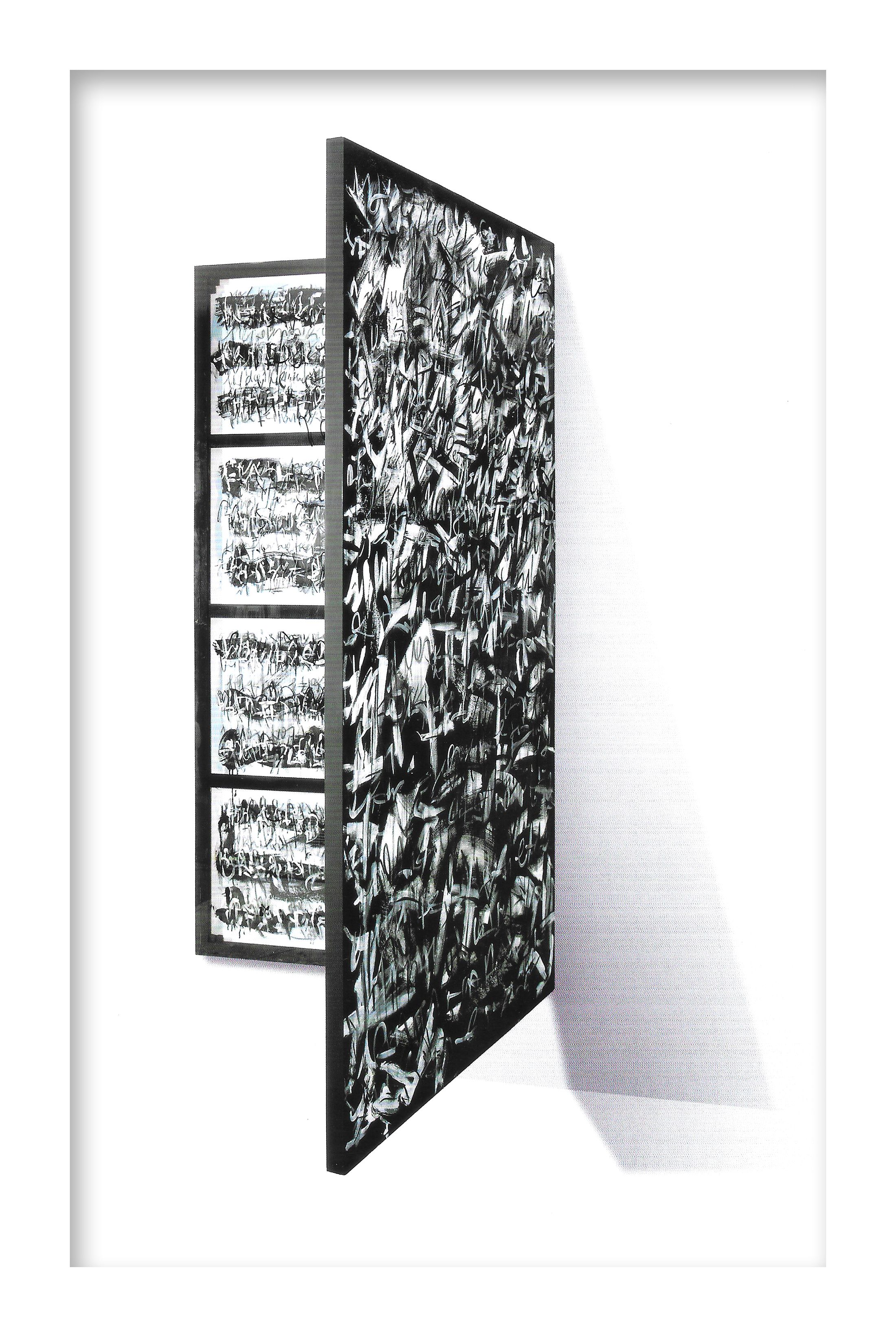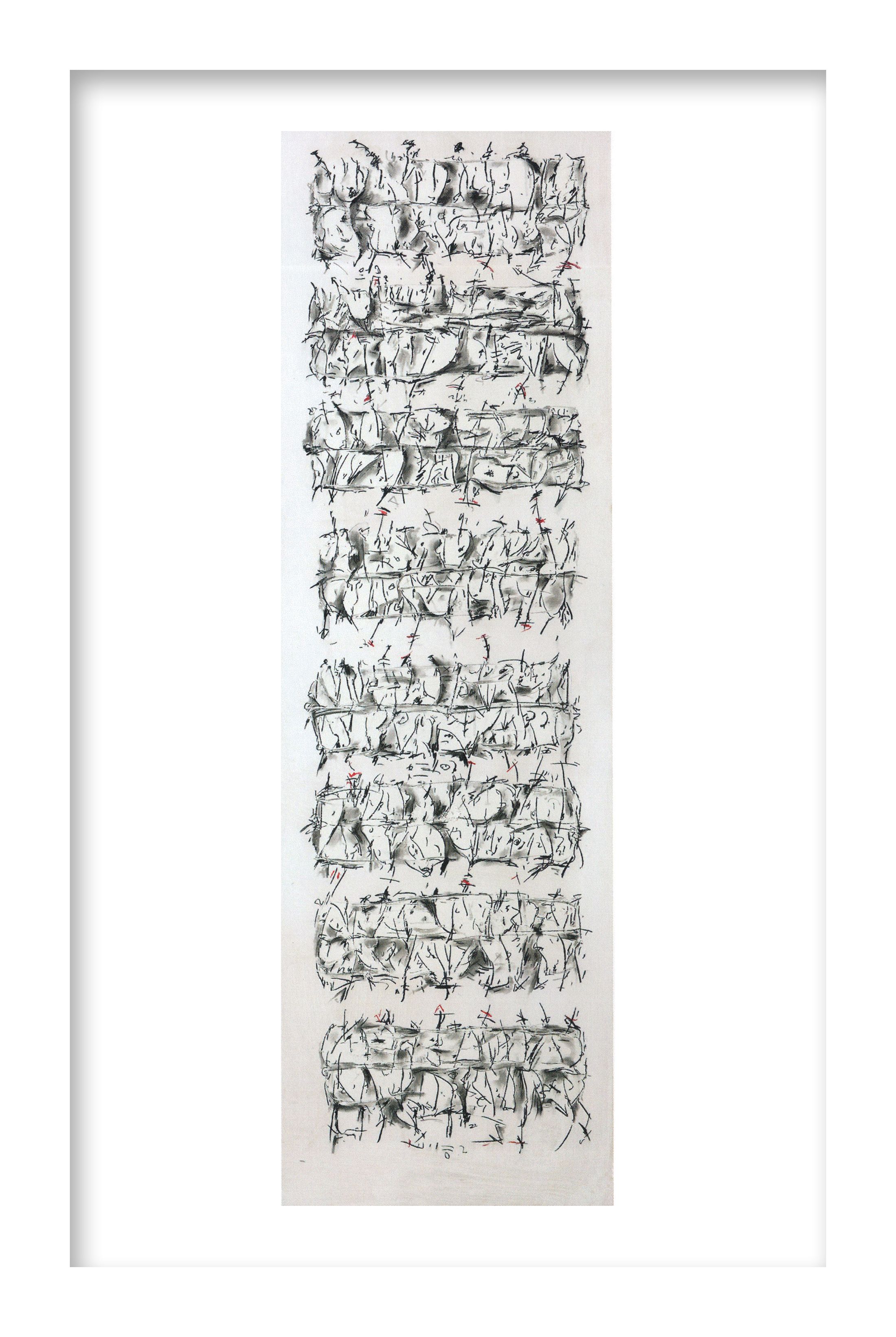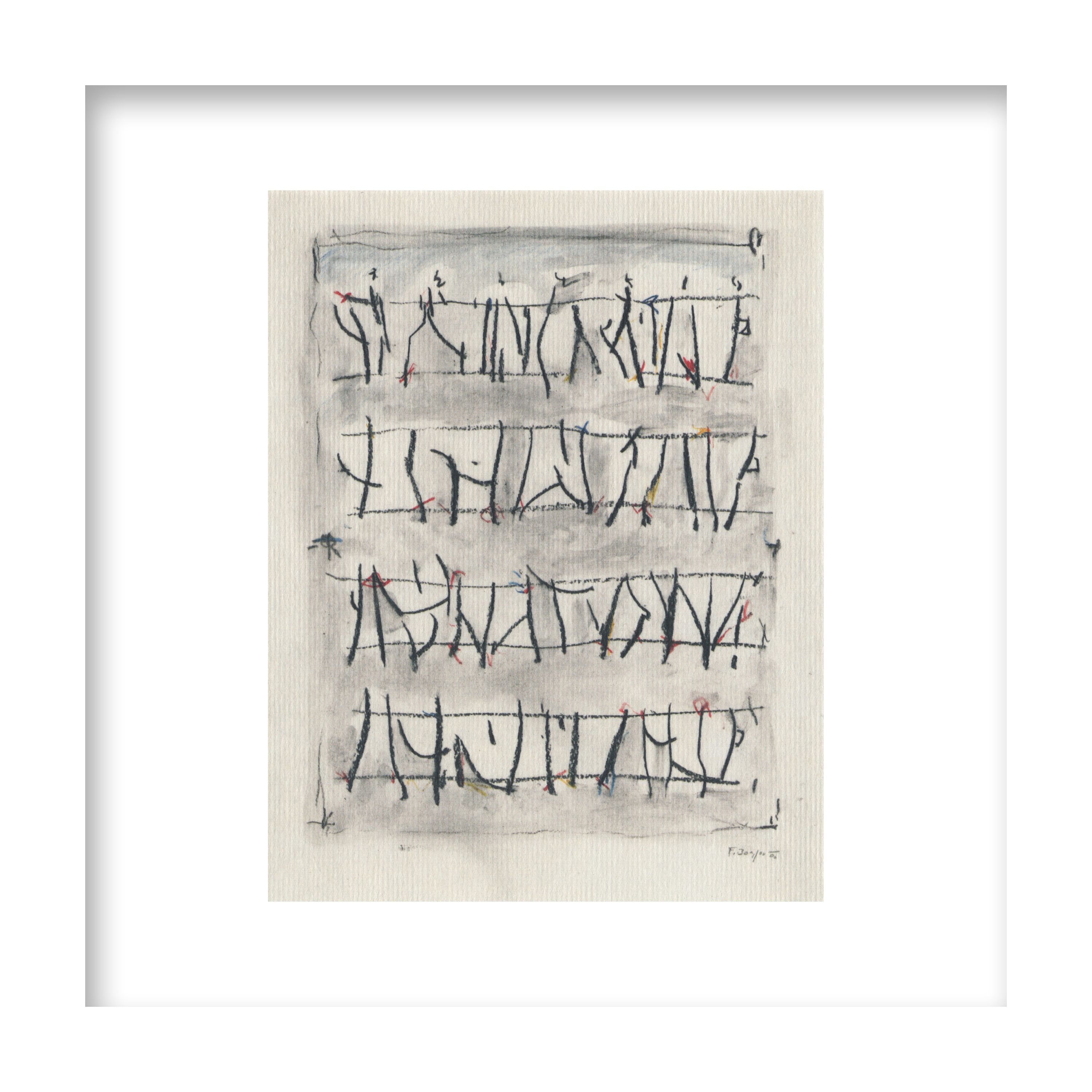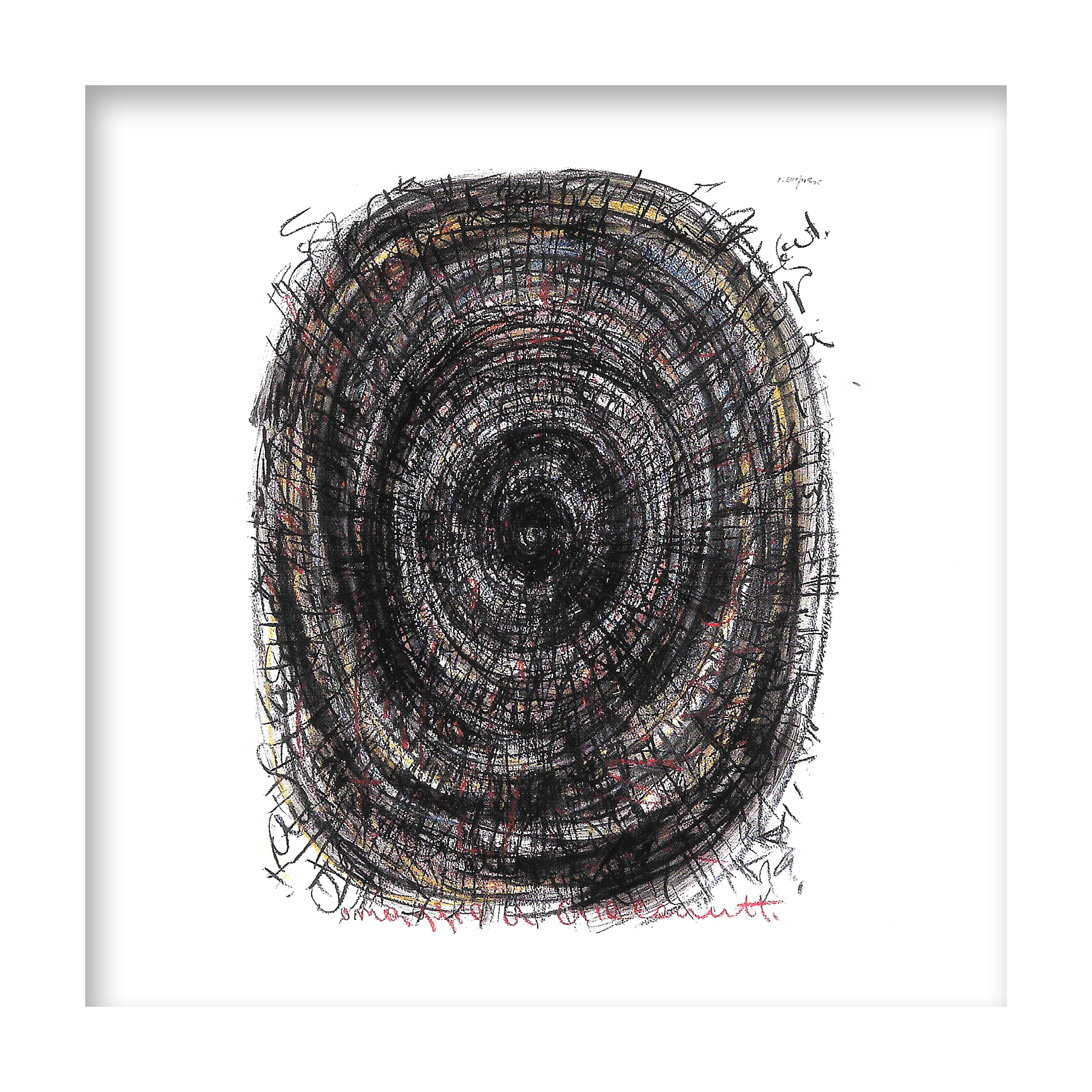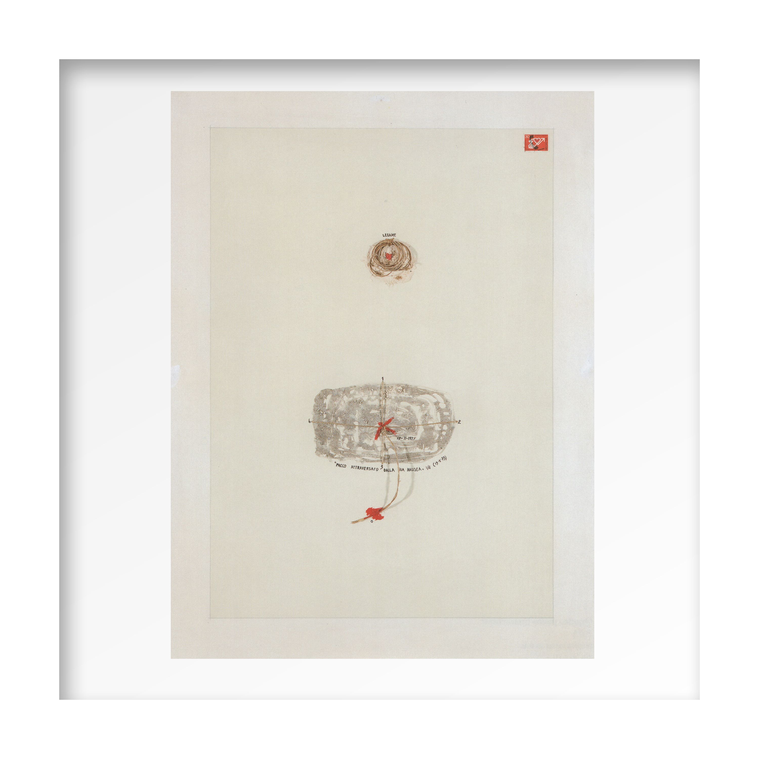 Bonjour adopts an expressive language of great material richness, juxtaposing heterogeneous elements with surprising harmony. His paintings often transcend the boundaries of the canvas, taking on an almost three-dimensional dimension thanks to the inclusion of unconventional objects and materials. On backgrounds prepared with mixed techniques, the artist applies sheets of paper, scraps of fabric, pages of books worn out by time, newspaper clippings, interweaving them with threads of string, ropes, wood fragments, red wax, broken glass and pigments. These poor materials - the 'skin of the city' as he ideally defines it - carry with them the echo of human presences, evoking lives and stories both past and future. Writing plays a central role in his compositions: elegant words and calligraphies appear, sometimes clearly legible, more often reduced to mysterious and indecipherable signs. This fusion of text and image recalls the legacy of Visual Poetry, but Bonjour reworks it in an entirely personal way. The written page is transformed into a visual element: it can be burnt at the edges, torn or covered with invented graphisms, becoming itself a surface to be contemplated. The combination of these verbal and iconic signs builds a dense and meaningful texture. Nothing is left to chance: the artist composes the different fragments with meticulous care, balancing solids and voids, light and dark, rigidity and fluidity. The result is works of refined elegance, in which the layering of materials creates physical and conceptual depth. Every detail - from the small piece of wax to a thin thread running through the paper - contributes to the overall meaning, inviting the observer into a silent conversation with the work. The result is a unique visual language, sober but incisive, capable of speaking on different levels: cultured and at the same time immediate, intimate and universal.