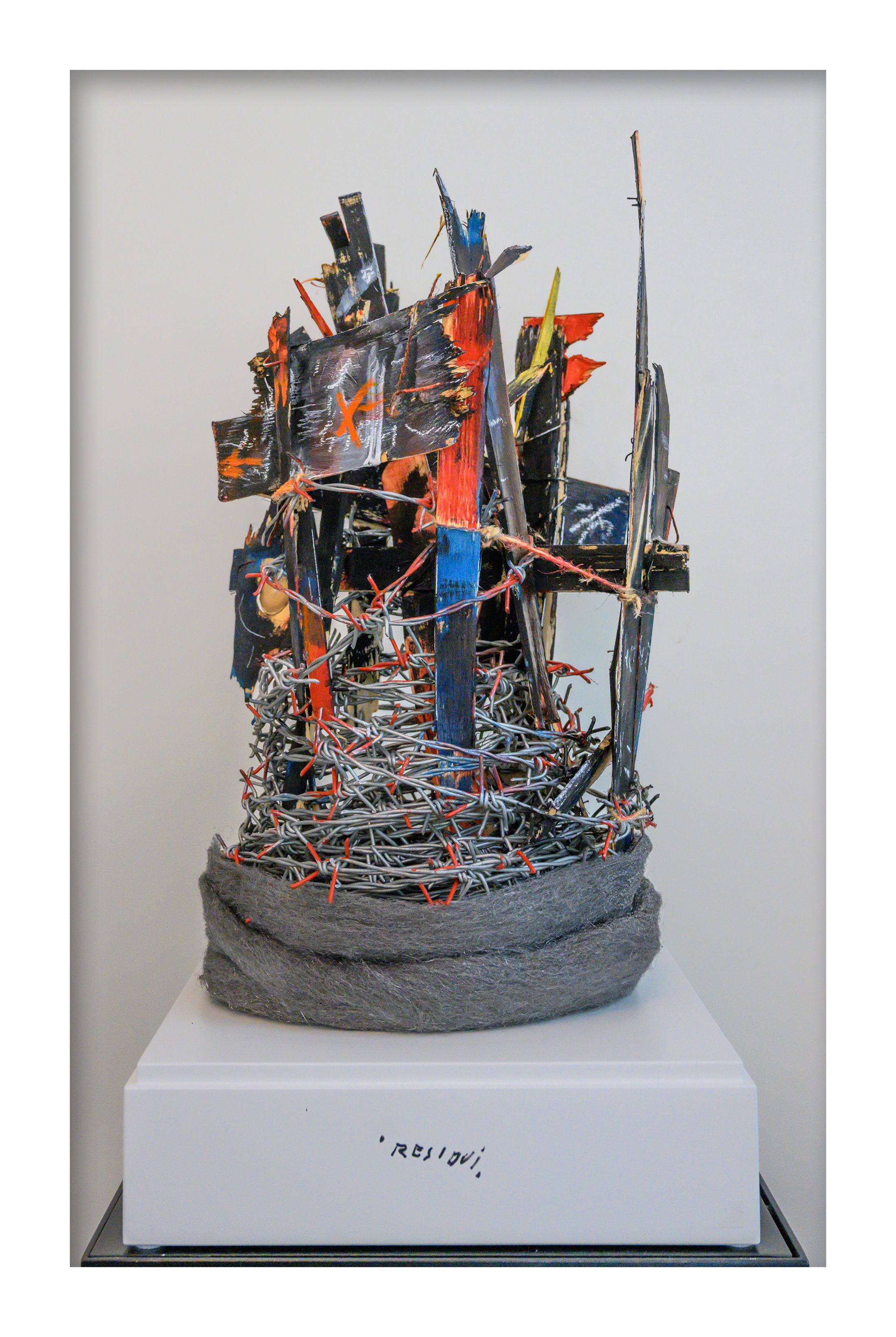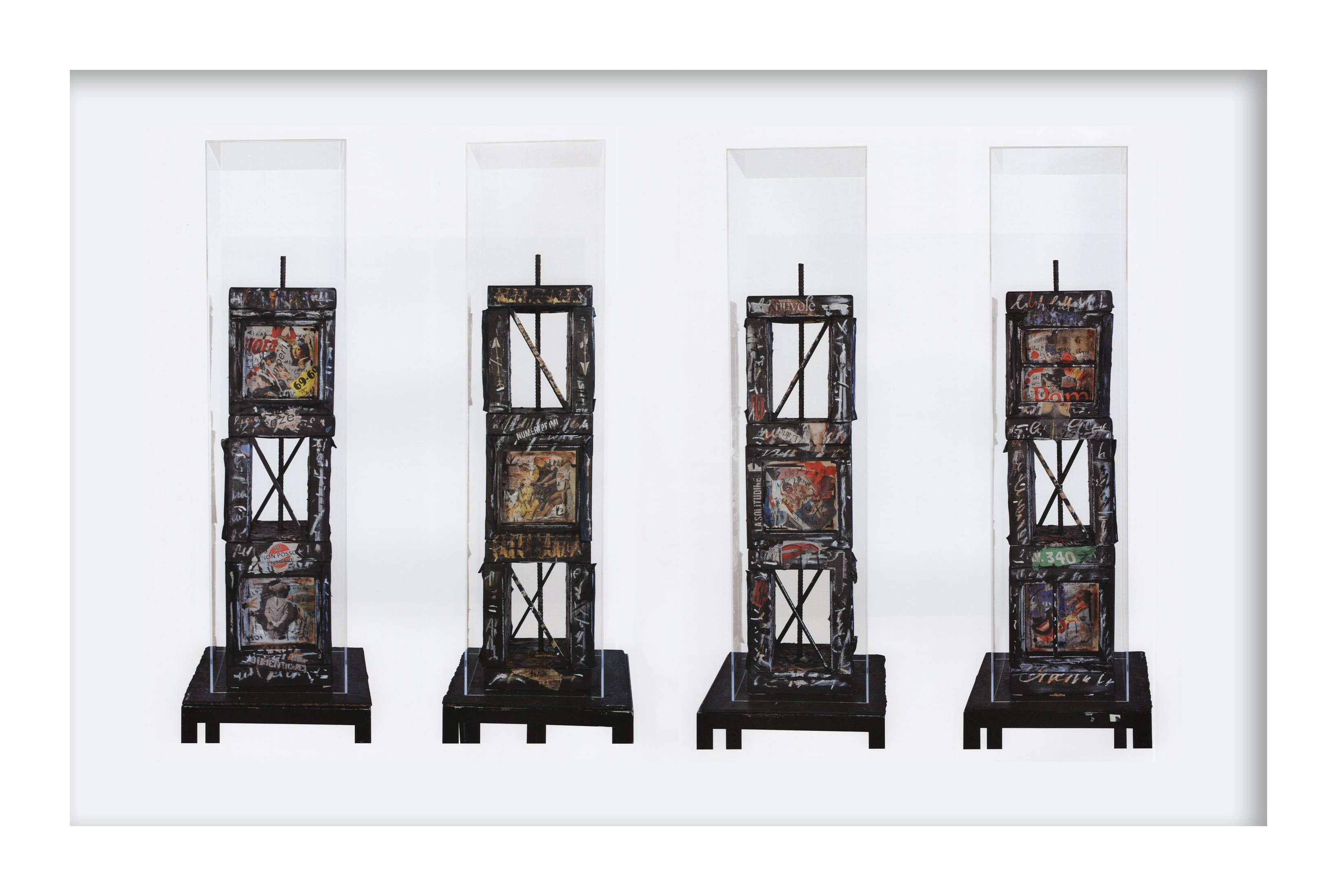 Bonjour's view of the world is imbued with a sensitivity that seeks the essential in things. His artistic research can be read as a patient journey towards simplification and expressive authenticity. Year after year, the artist has eliminated superfluous ornamentation, leading his works to a form of visual purging: few forms, few colours, but increasingly clearer meanings. This tension towards the essence translates the desire to give a poetic order to the chaos of matter. In fact, Bonjour collects the dispersed fragments of reality - forgotten objects, waste, memories - and recomposes them in a rigorous equilibrium, almost as if he wanted to discipline the disorder of the world. His works are therefore suspended in the balance between reality and imagination: they are 'reverberations' of the real world, filtered however through a gaze that purifies them of the dross of everyday life. There is no illusionistic or decorative intent, but rather a desire to ennoble ordinary existence, to extract its deep meaning. The overall tone of his compositions is measured and almost whispered: a visual lightness that in no way detracts from the strength of the message, on the contrary, it makes it more penetrating. Bonjour manages to combine lyricism and rigour: play and rule, spontaneity and reason coexist in his compositional choices. This generates an internal rhythm within the work - a breath, an underground pulsation - that holds the heterogeneous parts together and animates them with a life of its own. In this sense, each of Bonjour's creations becomes an ordered microcosm, a pulsating place of secret connections and controlled contrasts. The observer, in front of these works, is called to an almost meditative experience: he must get closer, linger over the details, let himself be guided by the paths traced by the artist to grasp the 'secret intelligence' of things.