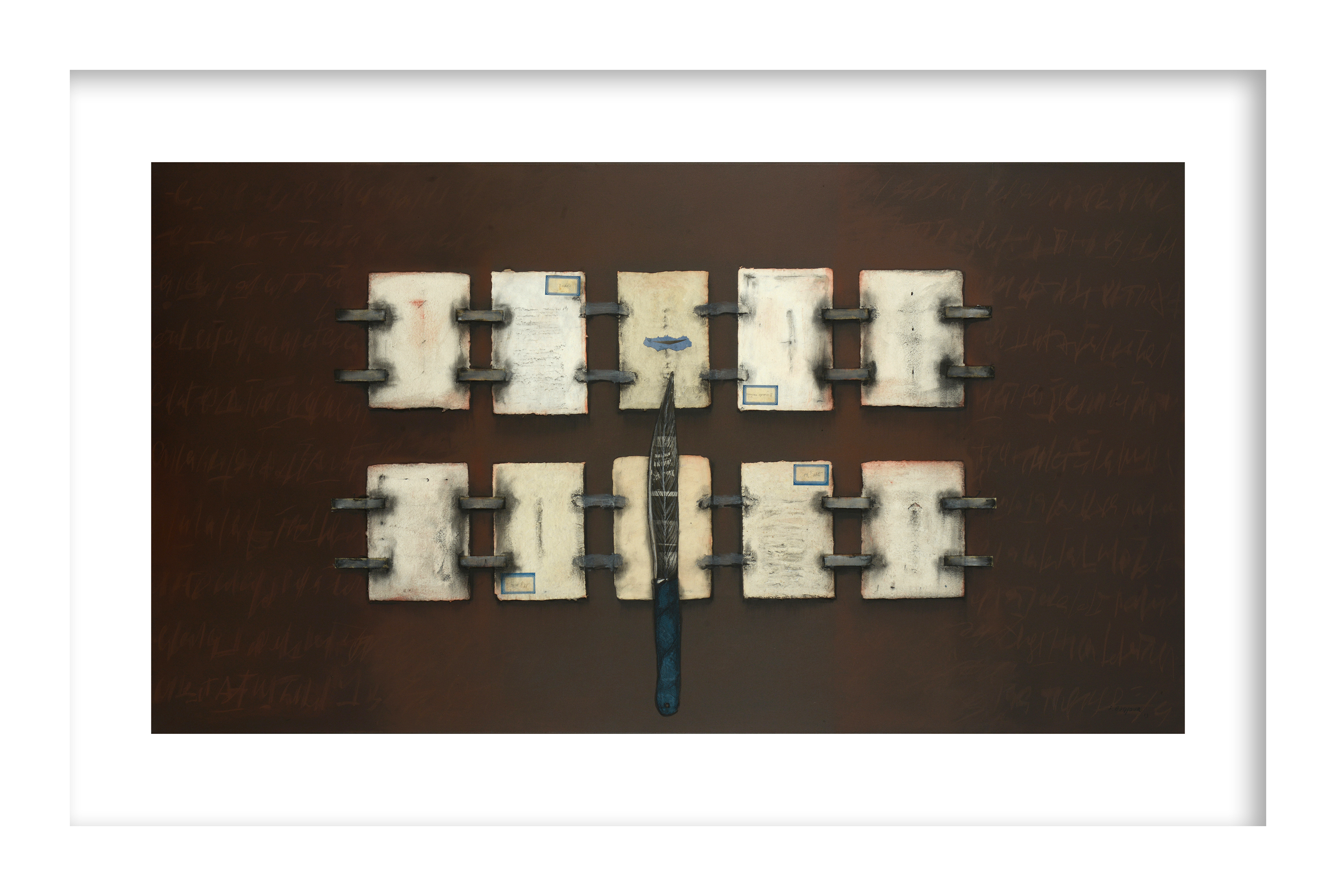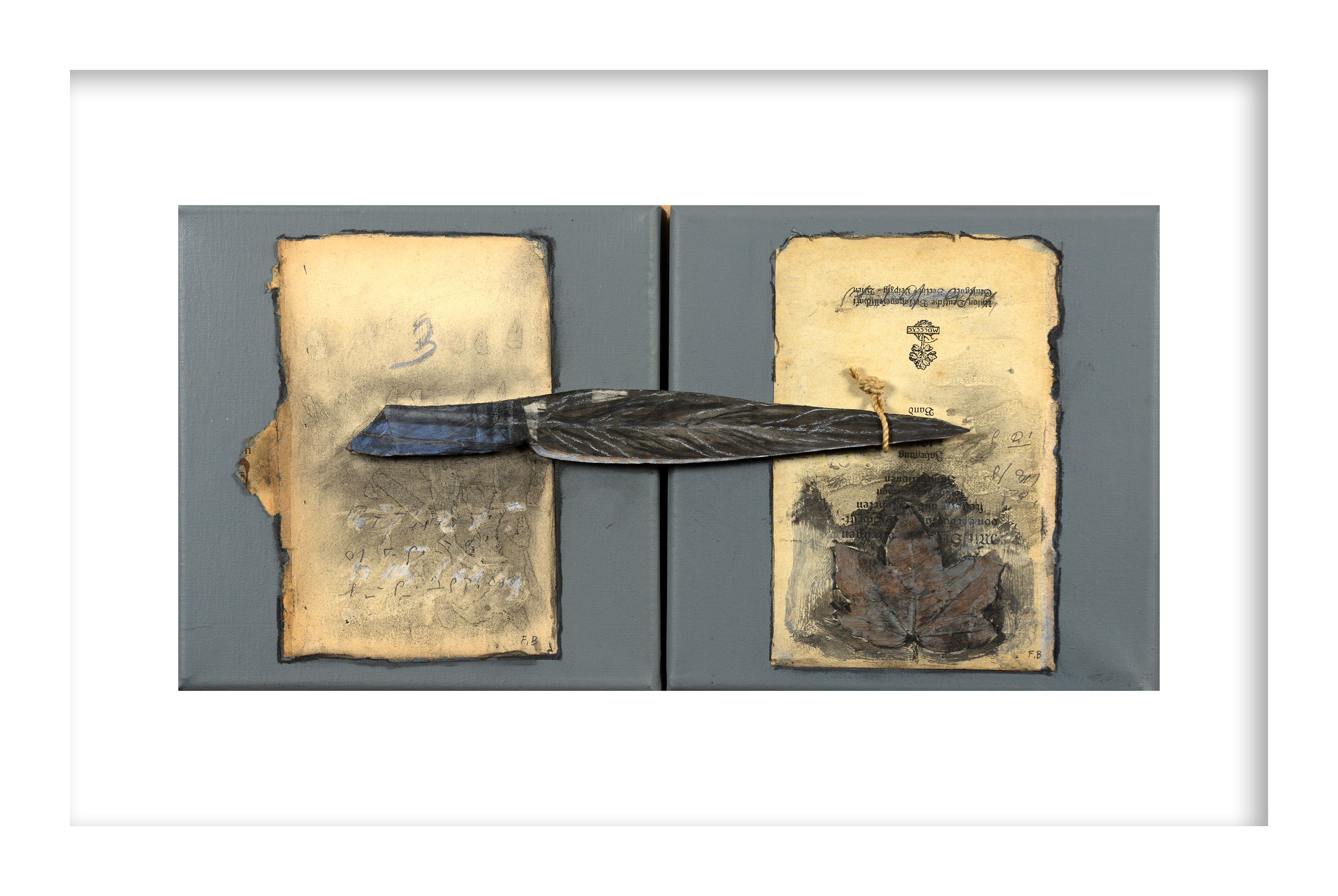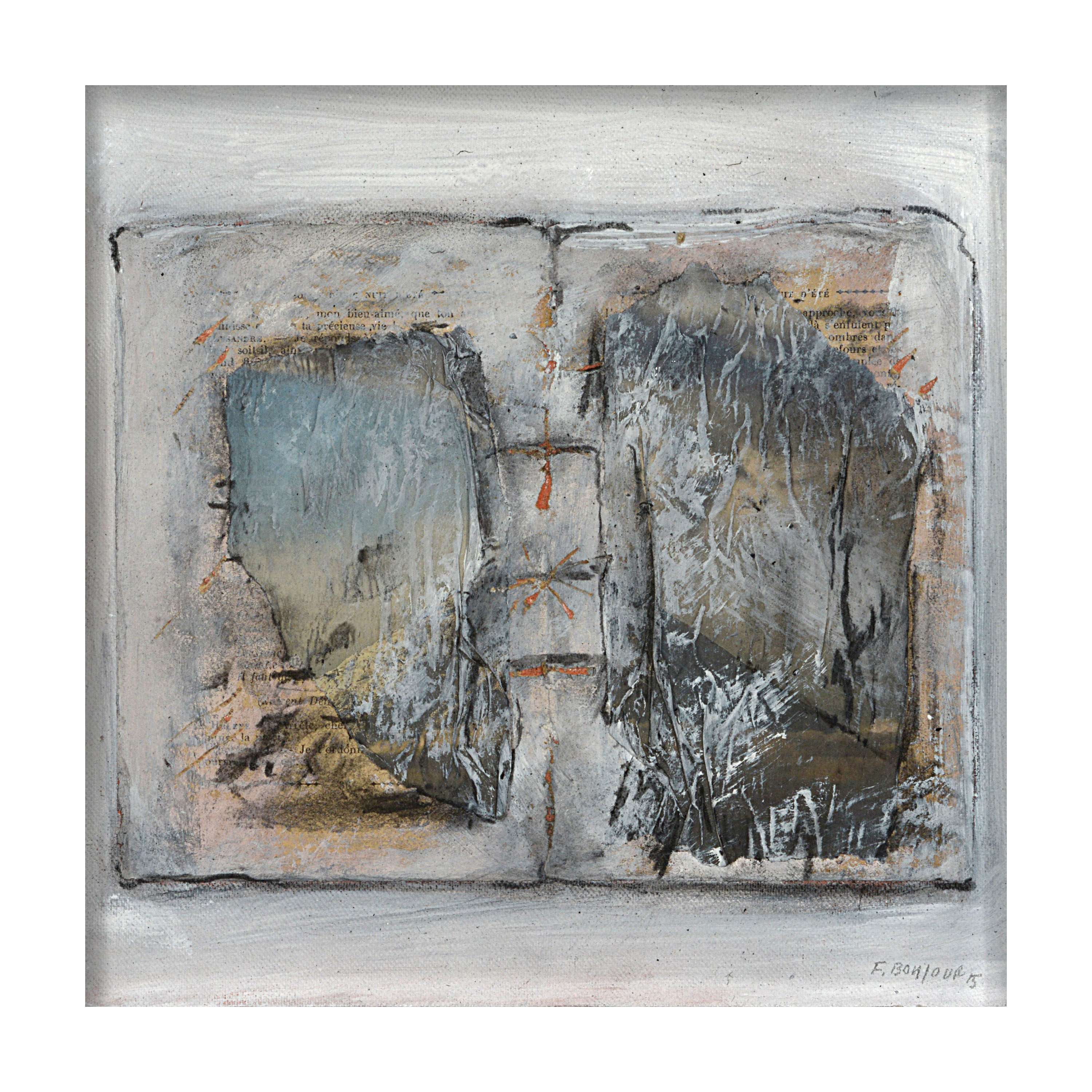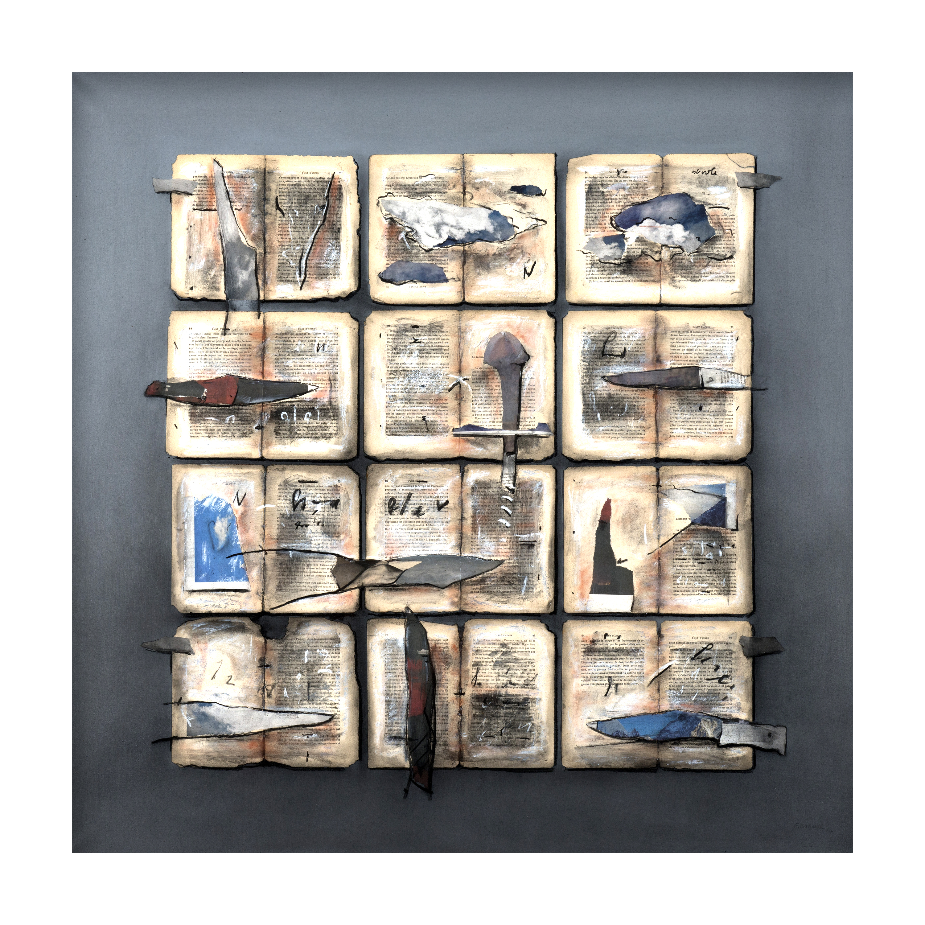 François Bonjour's creations stem from the idea that every fragment of reality can tell a story. His poetics are deeply linked to memory and time: ancient books, yellowed pages, letters and words emerge in his works as traces of past lives, to be saved from oblivion in an era dominated by digital technology. Each painting thus becomes a small story of existence, a “place” suspended between truth and vision where human imprints – the beauties and ruins of the world – take on new meanings. Bonjour draws on the literary universe to transfer its essence into her visual language: the book is seen as an everyday relic, a guardian of wisdom, the written page as a code to be deciphered, the word as an indelible trace of emotions. In her works, these elements are not mere quotations but narrative voices, tools of an intimate story that engages the viewer. The observer is invited to explore the work as a territory of memory, gradually discovering hidden levels of interpretation. This ability to tell stories, to transform materials into stories, has been a constant feature of Bonjour's artistic career since its beginnings in the 1970s. Despite his stylistic evolution, the artist has always remained faithful to his basic idea: to breathe new life into memories and traces of the past, composing them into a present full of poetry.
