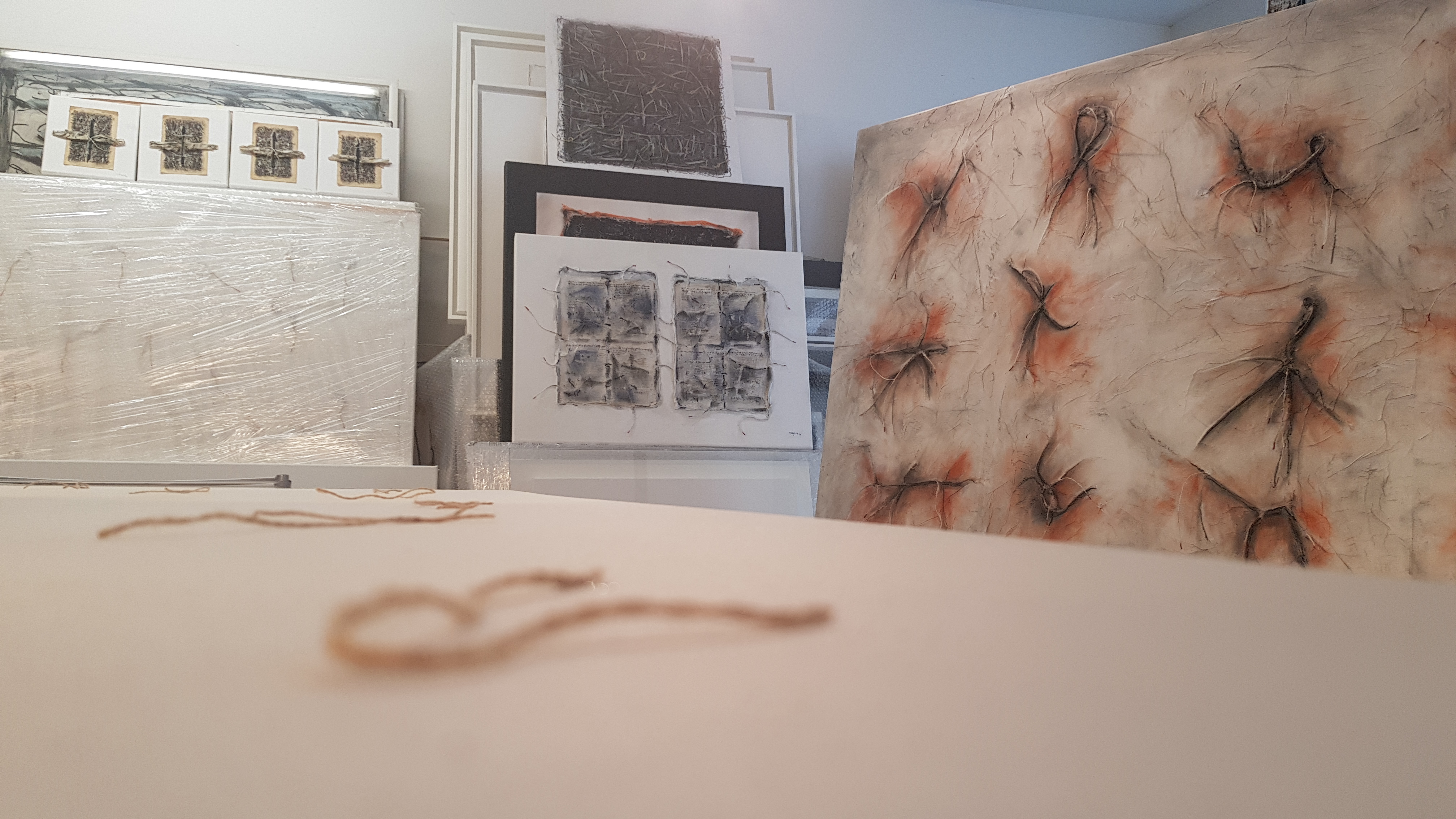 François Bonjour's work stands out for its poetic use of humble and recycled materials, in line with the aesthetics of Arte Povera, which influenced his training. He himself defines these material elements as the “skin of the city”: ropes, wood, wax and, above all, paper torn from old books and notebooks, which the artist reassembles in his canvases and installations, exploiting the rhythmic marks of the written pages.